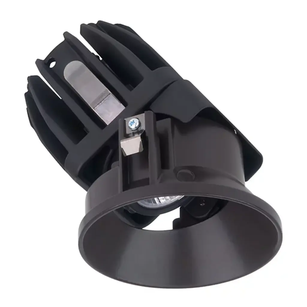 The FQ 2-Inch LED Round Shallow Trimless Wall Wash Trim with Light Engine from WAC Lighting prioritizes glare control to ensure comfortable lighting environments. It operates effectively in a temperature range from -4°F to 104°F (-20°C to 40°C) and features a two-piece die-cast construction with a compact size suitable for shallow ceiling plenums. The light engine is thoughtfully mounted on the trim using springs, simplifying replacement. This product is designed for uniform wall illumination in both vertical and horizontal orientations.