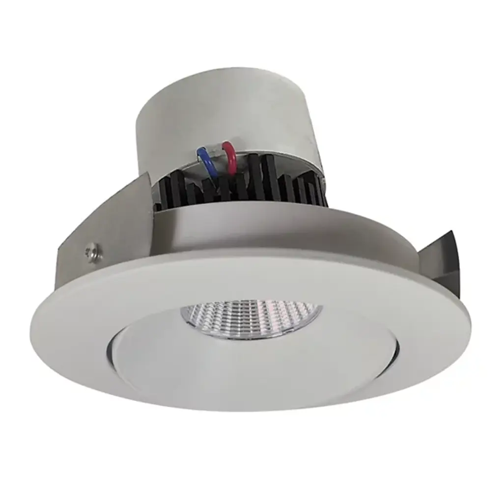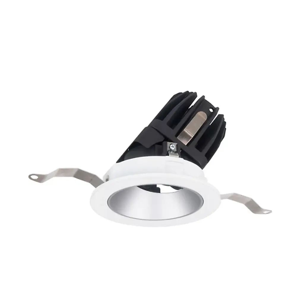 Aim adjustable downlight with the FQ 4-Inch LED Round Adjustable Trim from WAC Lighting, featuring tilting and rotation while retaining center beam alignment. The LED light engine is mounted on springs, enabling simple maintenance. An integrated heat sink cools the fixture for flexible performance while accepting a single lens or accessory. Its die-cast aluminum construction adapts to sloped ceilings with ease while being able to change beam angles in the field to customize projects. This adjustable round narrow trim gives contractors reliable performance with hassle-free adjustability.