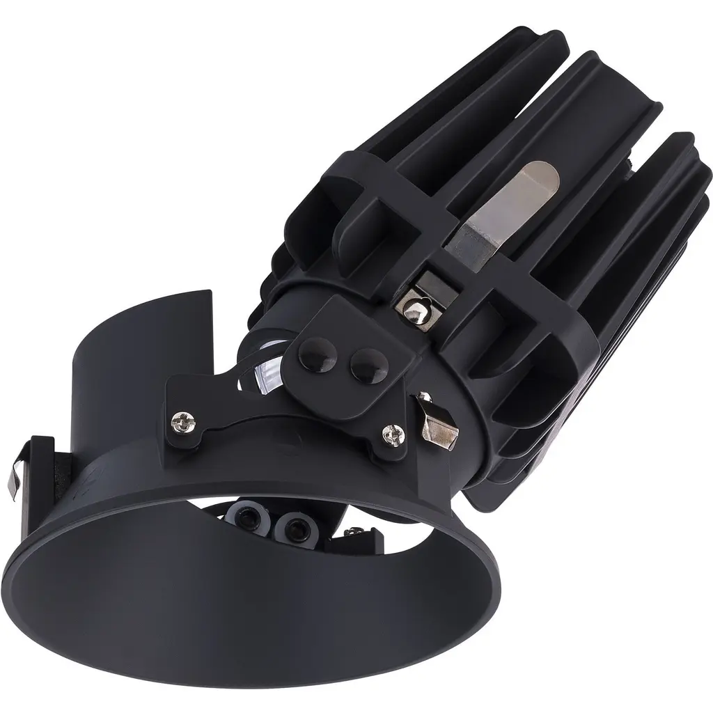 The FQ 4-Inch LED Square Adjustable Trimless Trim with Light Engine from WAC Lighting emphasizes glare control, incorporating a 30° shielding angle, 45° vertical tilting, and 360° horizontal rotation, ensuring uniform floor-to-ceiling wall washing. This product is user-friendly, making ordering, installation, and servicing straightforward. It operates effectively in temperatures ranging from -4°F to 104°F (-20°C to 40°C) and boasts a durable two-piece die-cast construction. The light engine is conveniently mounted on the trim with springs, enabling easy replacement. Furthermore, it allows for a vertical tilting range of 0-45° and horizontal rotation of 365° while retaining center beam alignment throughout the adjustment range.