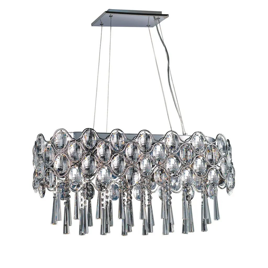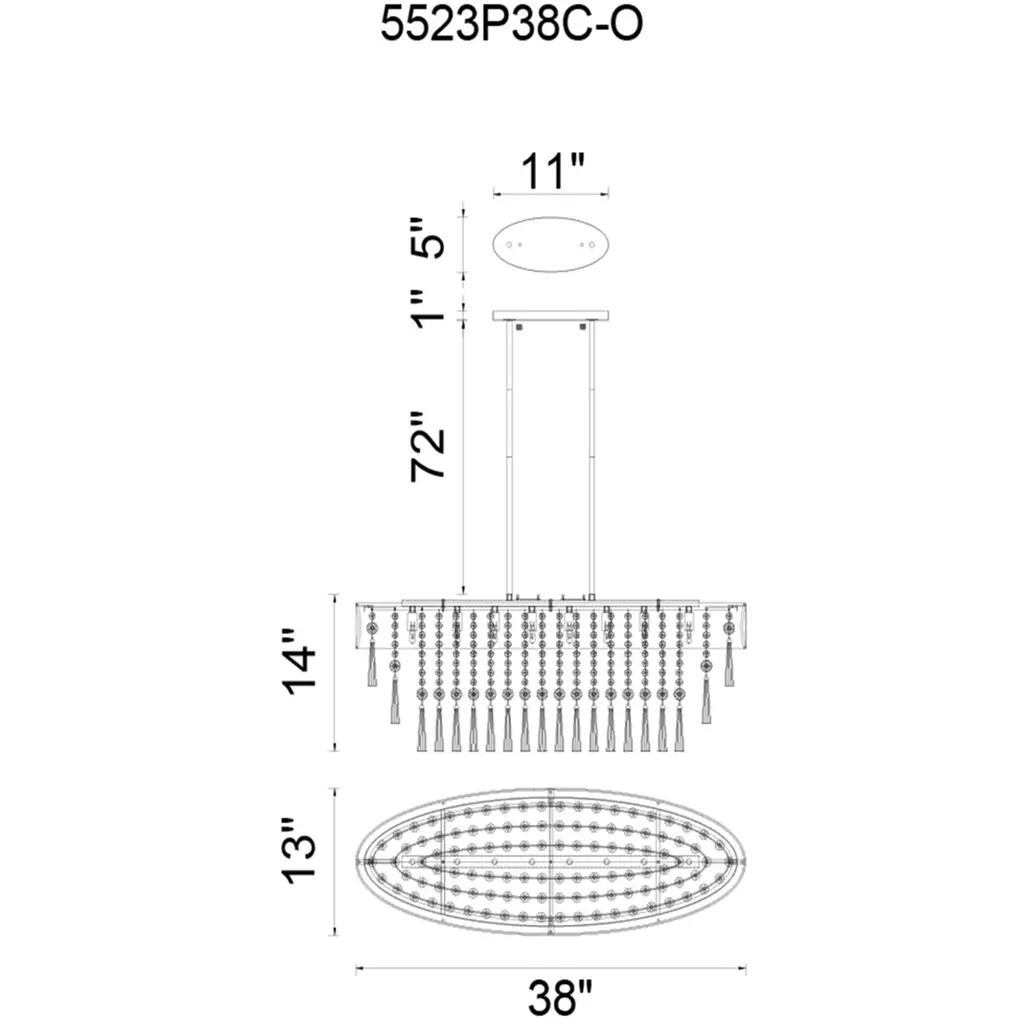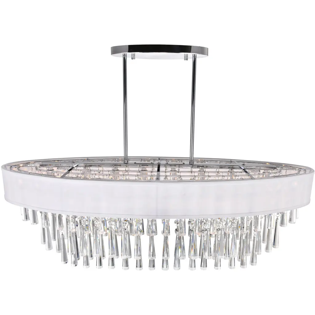 Make a grand statement with the Franca 38'' 8 Light Oval Drum Shade Chandeliera show-stopping centerpiece designed for luxurious interiors. Suspended from a polished chrome canopy, this oversized chandelier features a soft off-white oval drum shade that houses three sparkling tiers of crystal tubes and beads. The elegant silhouette delivers both dazzling light and refined visual interest, making it the ideal fixture for dining rooms, kitchen islands, or open-concept living areas. G9 LED compatible and built to impress, this glamorous ceiling light brings elegance and practicality together in perfect harmony. Finish: Chrome Shade: Off-White Oval Drum Light Count: 8 Light Source: G9 LED Compatible (Bulbs Not Included) Adjustable Hanging Height: Yes Material: Metal, Fabric, Crystal Style: Glam / Transitional / Modern