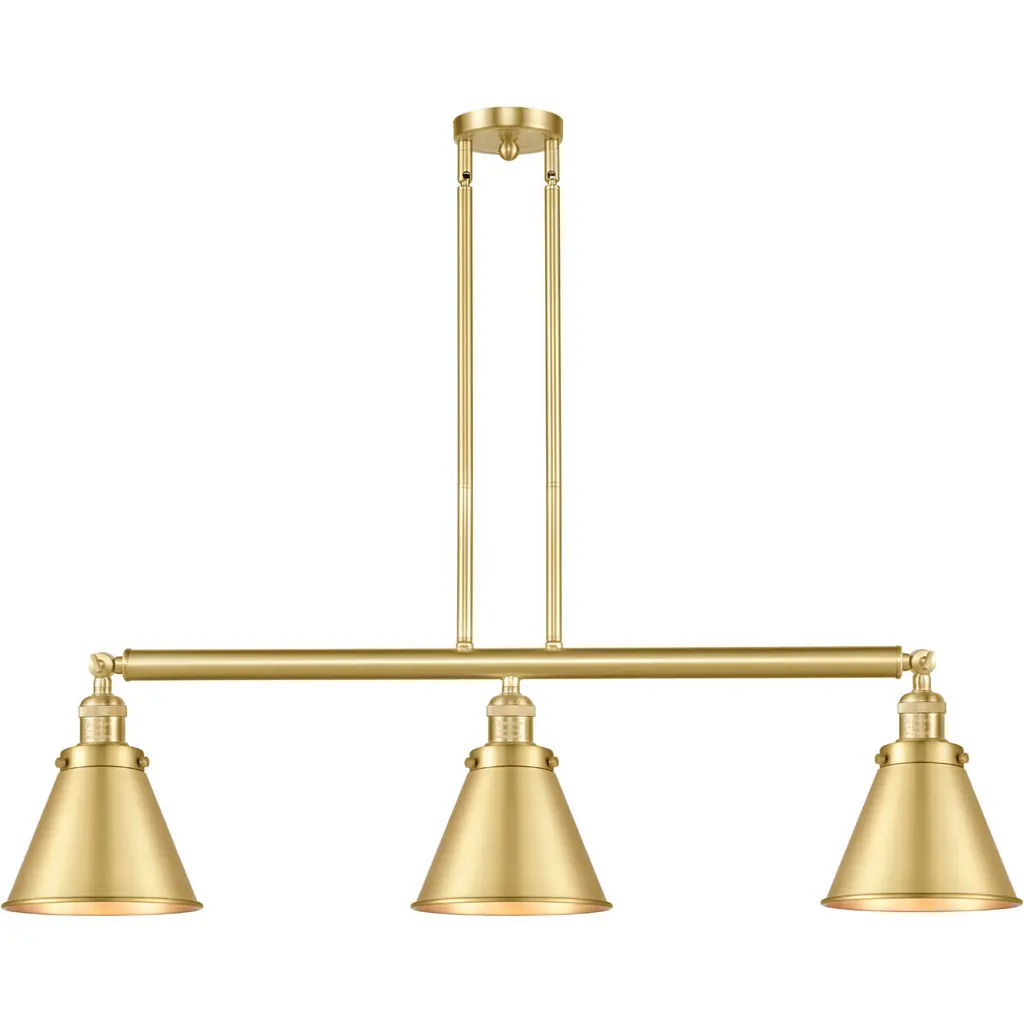 Franklin Restoration Appalachian 3 Light 40 Inch Satin Gold Island Light Ceiling Light, Franklin Restoration