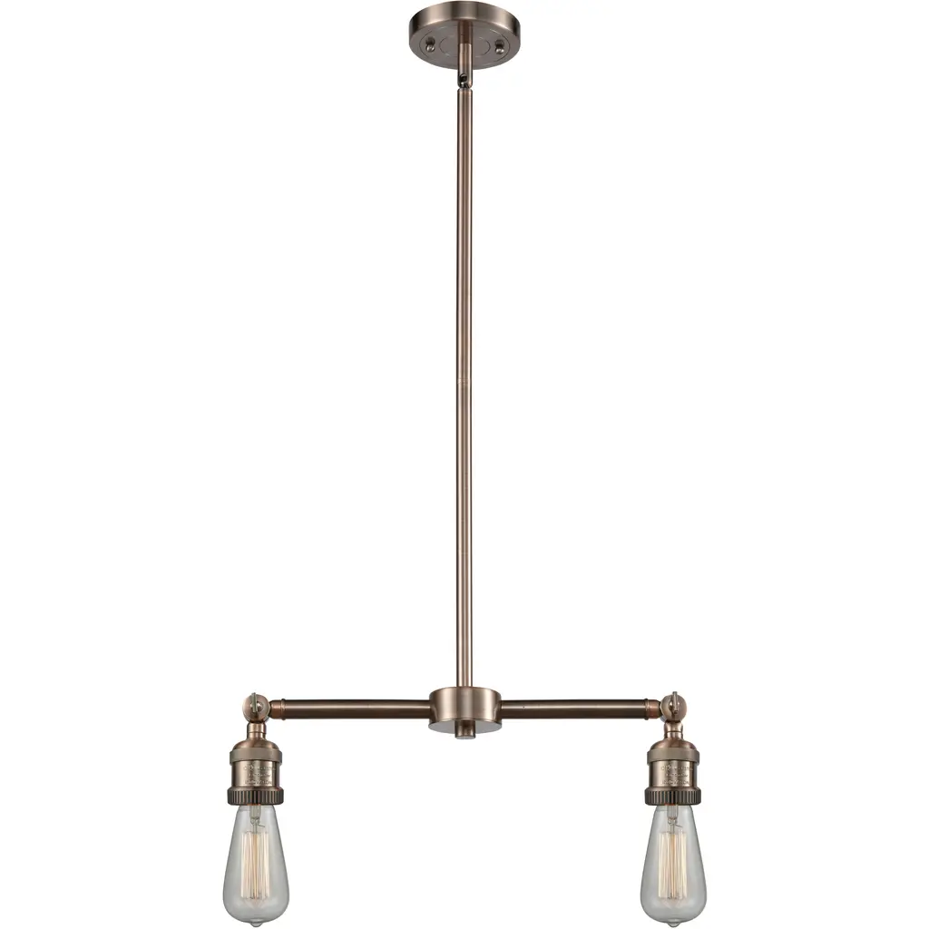 The Bare Bulb 2 Light Mini Chandelier is part of the Franklin Restoration Collection. Includes 1-6 and 2-12 inch Stems With Solid Brass 90 Degree Hang Straight Swivel for Sloped Ceilings. Solid Brass 90 Degree Hang Straight Swivel for Sloped Ceilings Included