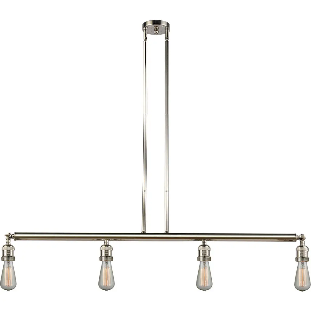 The Bare Bulb 4 Light Island Light is part of the Franklin Restoration Collection. Includes 2-6 and 4-12 inch Stems With Solid Brass 90 Degree Hang Straight Swivel for Sloped Ceilings. Solid Brass 90 Degree Hang Straight Swivel for Sloped Ceilings Included