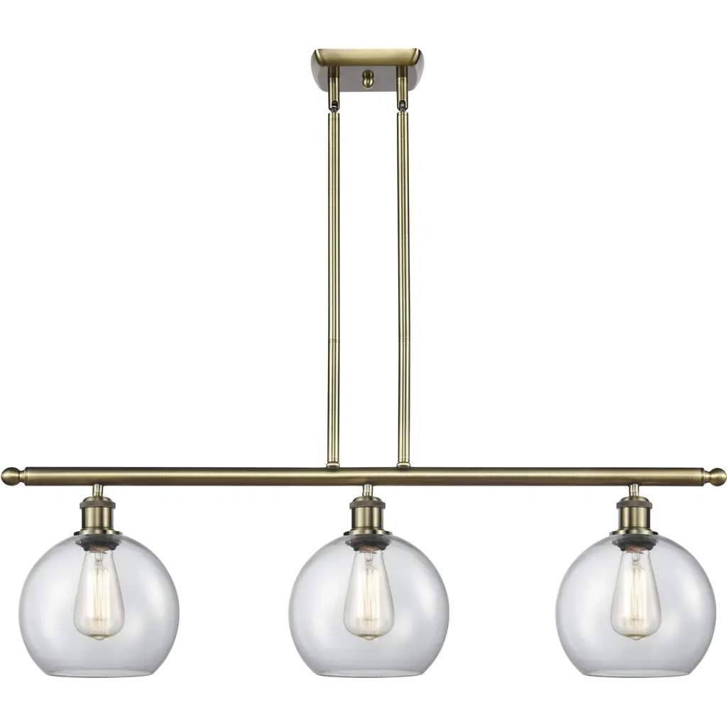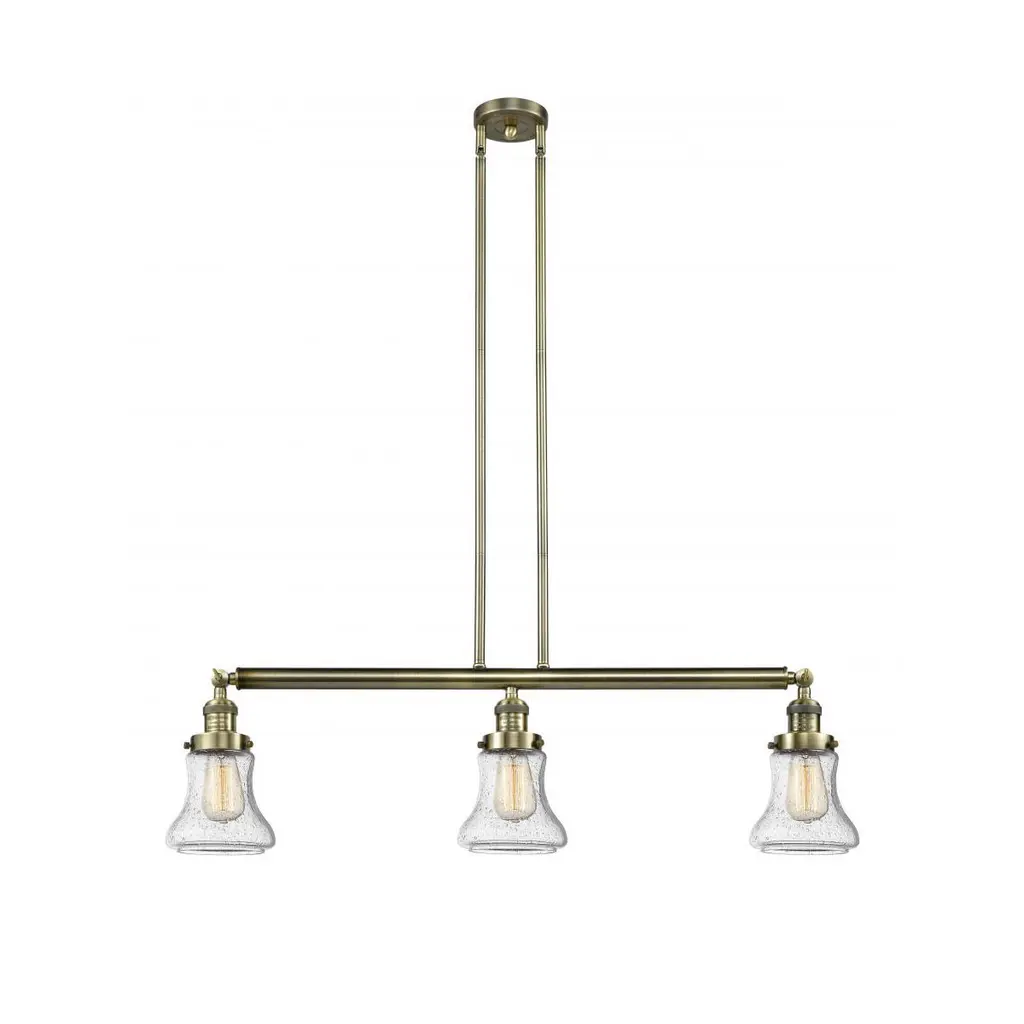 The Beacon 3 Light Island Light is part of the Franklin Restoration Collection. Includes 2-6 and 4-12 inch Stems. Additional Stems sold separately.. Solid Brass 180 Degree Adjustable Swivels with internal teeth that lock in at 5 degree intervals With Engraved Cast Cup. Solid Brass 90 Degree Hang Straight Swivel for Sloped Ceilings Included