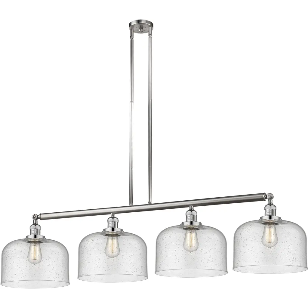 The X-Large Bell 4 Light Island Light is part of the Franklin Restoration Collection. Includes 2-6 and 4-12 inch Stems With Solid Brass 90 Degree Hang Straight Swivel for Sloped Ceilings. Solid Brass 180 Degree Adjustable Swivels with internal teeth that lock in at 5 degree intervals With Engraved Cast Cup. Solid Brass 90 Degree Hang Straight Swivel for Sloped Ceilings Included