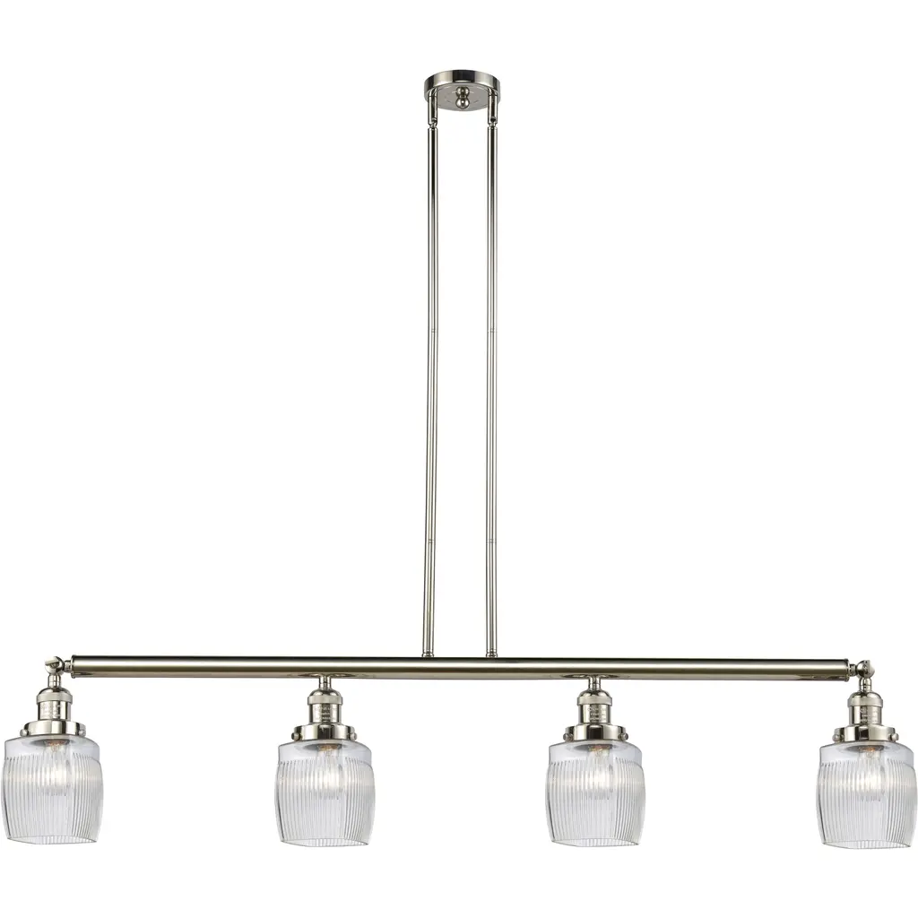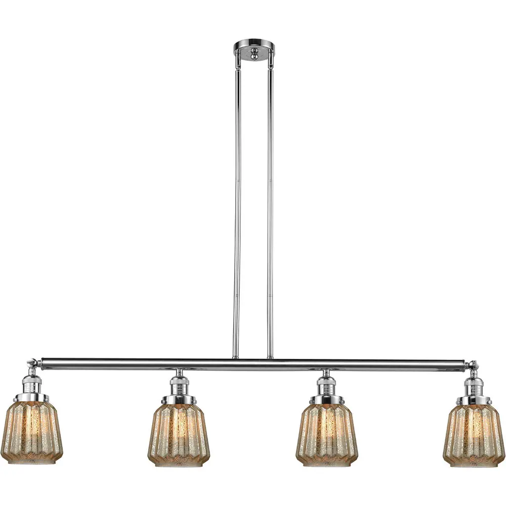 The Chatham 4 Light Island Light is part of the Franklin Restoration Collection. Includes 2-6 and 4-12 inch Stems With Solid Brass 90 Degree Hang Straight Swivel for Sloped Ceilings. Solid Brass 180 Degree Adjustable Swivels with internal teeth that lock in at 5 degree intervals With Engraved Cast Cup. Solid Brass 90 Degree Hang Straight Swivel for Sloped Ceilings Included