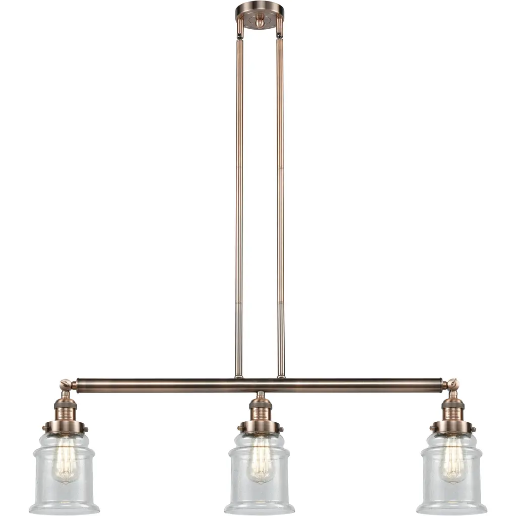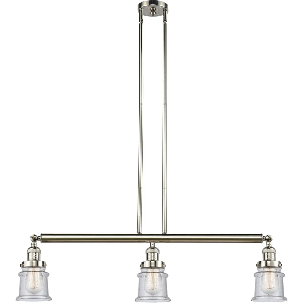 The Colton 3 Light Island Light is part of the Franklin Restoration Collection. Includes 2-6 and 4-12 inch Stems. Additional Stems sold separately.. Solid Brass 180 Degree Adjustable Swivels with internal teeth that lock in at 5 degree intervals With Engraved Cast Cup. Solid Brass 90 Degree Hang Straight Swivel for Sloped Ceilings Included