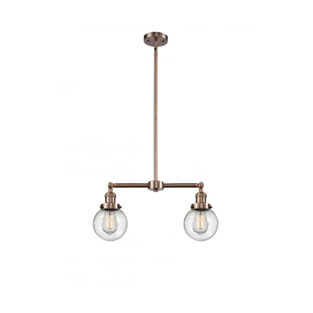 Franklin Restoration Dover 2 Light 21 Inch Antique Copper Island Light Ceiling Light In Seedy Glass, Franklin Restoration
