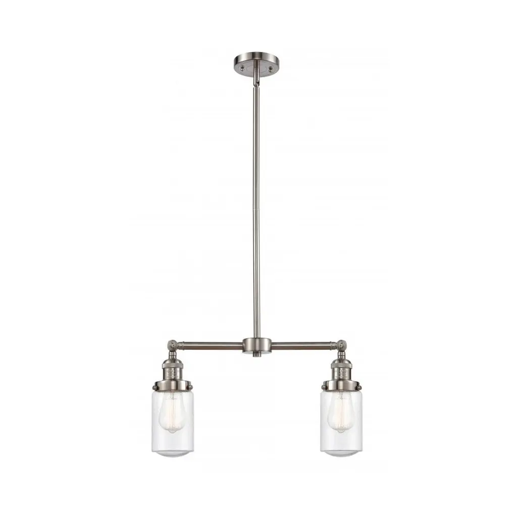 The Dover 2 Light Chandelier is part of the Franklin Restoration Collection. Includes 1-6 and 2-12 inch Stems. Additional Stems sold separately.. Solid Brass 180 Degree Adjustable Swivels with internal teeth that lock in at 5 degree intervals With Engraved Cast Cup. Solid Brass 90 Degree Hang Straight Swivel for Sloped Ceilings Included