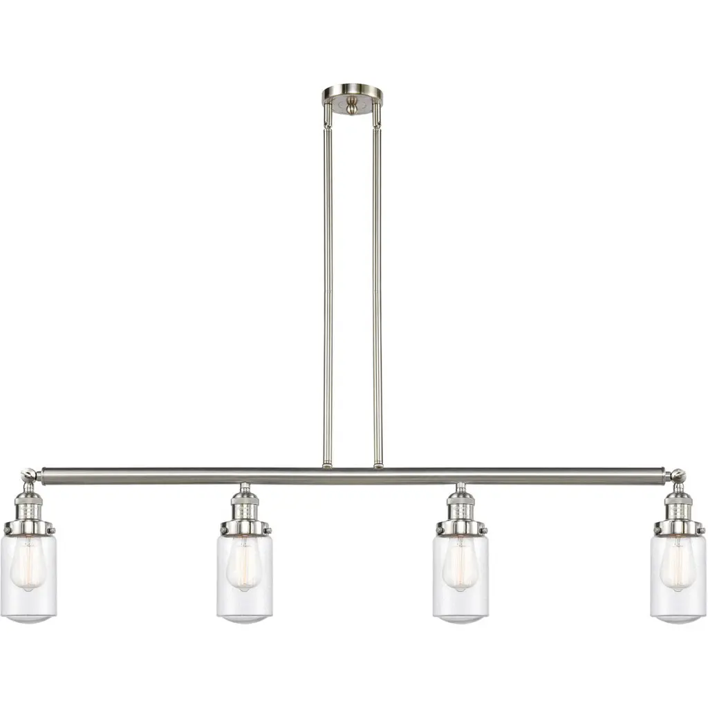 The Dover 4 Light Island Light is part of the Franklin Restoration Collection. Includes 2-6 and 4-12 inch Stems. Additional Stems sold separately.. Solid Brass 180 Degree Adjustable Swivels with internal teeth that lock in at 5 degree intervals With Engraved Cast Cup. Solid Brass 90 Degree Hang Straight Swivel for Sloped Ceilings Included