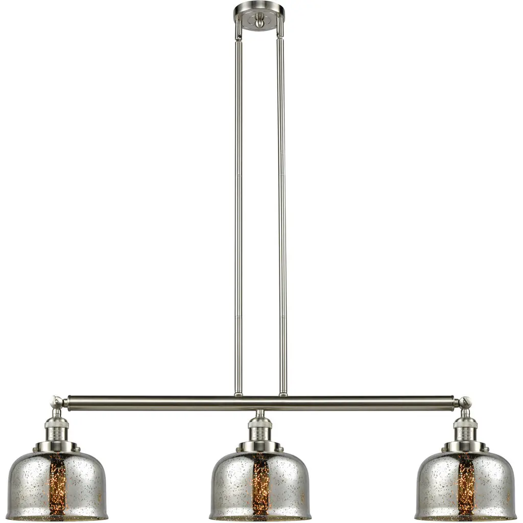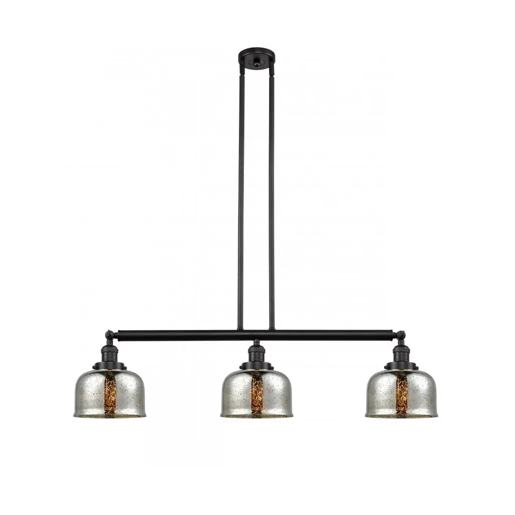 Franklin Restoration Large Bell 3 Light 41 Inch Matte Black Island Light Ceiling Light In Silver Plated Mercury Glass, Franklin Restoration