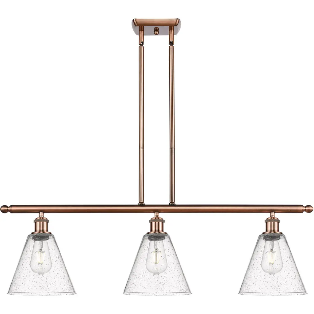 The Large Cone 3 Light Island Light is part of the Franklin Restoration Collection. Includes 2-6 and 4-12 inch Stems. Additional Stems sold separately. Solid Brass 180 Degree Adjustable Swivels with internal teeth that lock in at 5 degree intervals With Engraved Cast Cup. Solid Brass 90 Degree Hang Straight Swivel for Sloped Ceilings Included