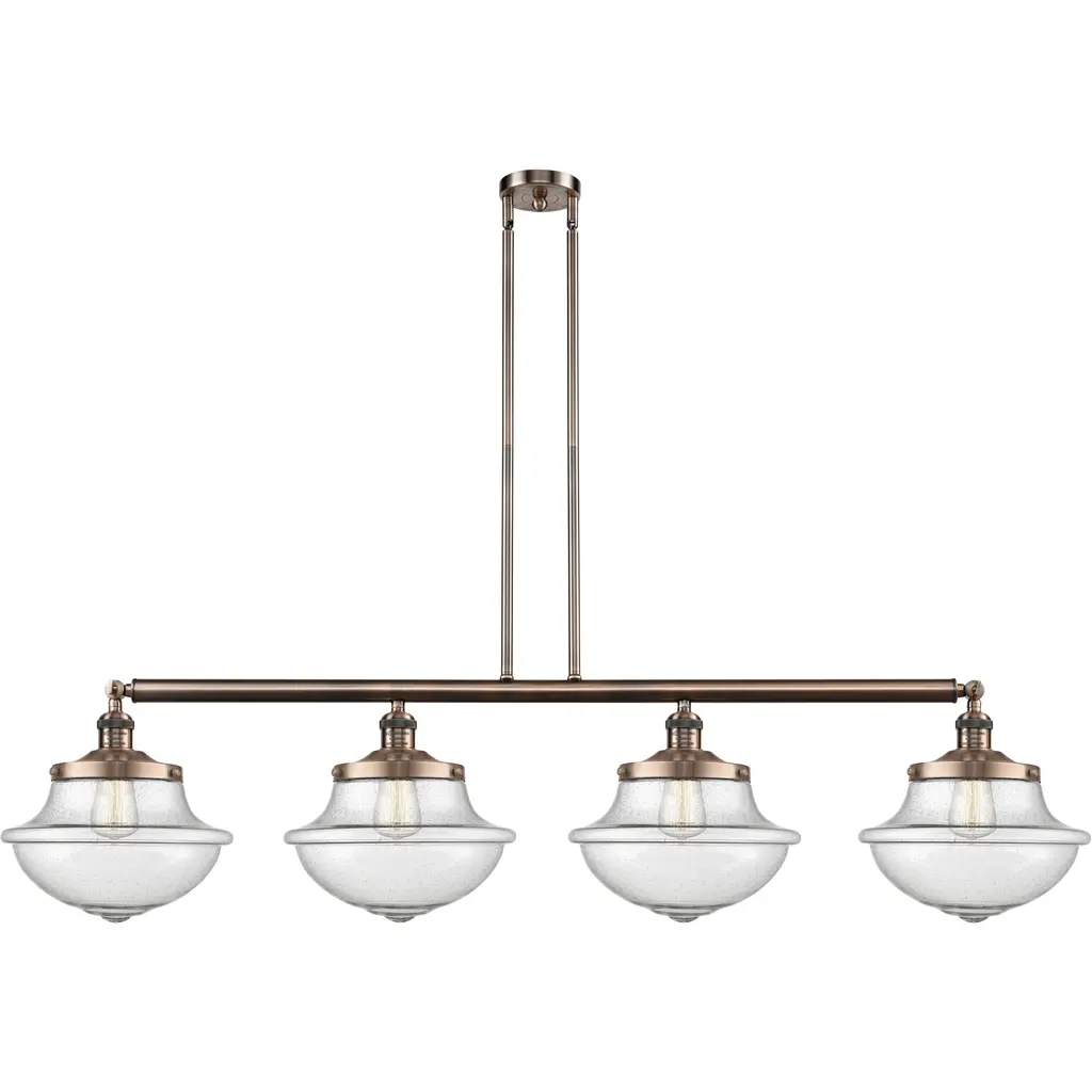 The Large Oxford 3 Light Island Light is part of the Franklin Restoration Collection. Includes 2-6 and 4-12 inch Stems. Additional Stems sold separately.. Solid Brass 180 Degree Adjustable Swivels with internal teeth that lock in at 5 degree intervals With Engraved Cast Cup. Solid Brass 90 Degree Hang Straight Swivel for Sloped Ceilings Included