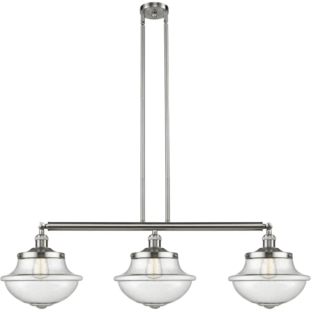 Franklin Restoration Large Oxford 3 Light 42 Inch Polished Nickel Island Light Ceiling Light In Seedy Glass, Franklin Restoration