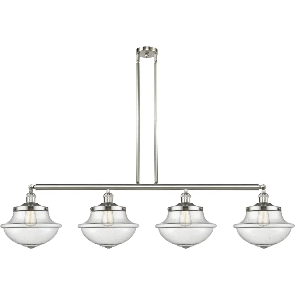 Franklin Restoration Large Oxford 4 Light 54 Inch Polished Nickel Island Light Ceiling Light In Seedy Glass, Franklin Restoration