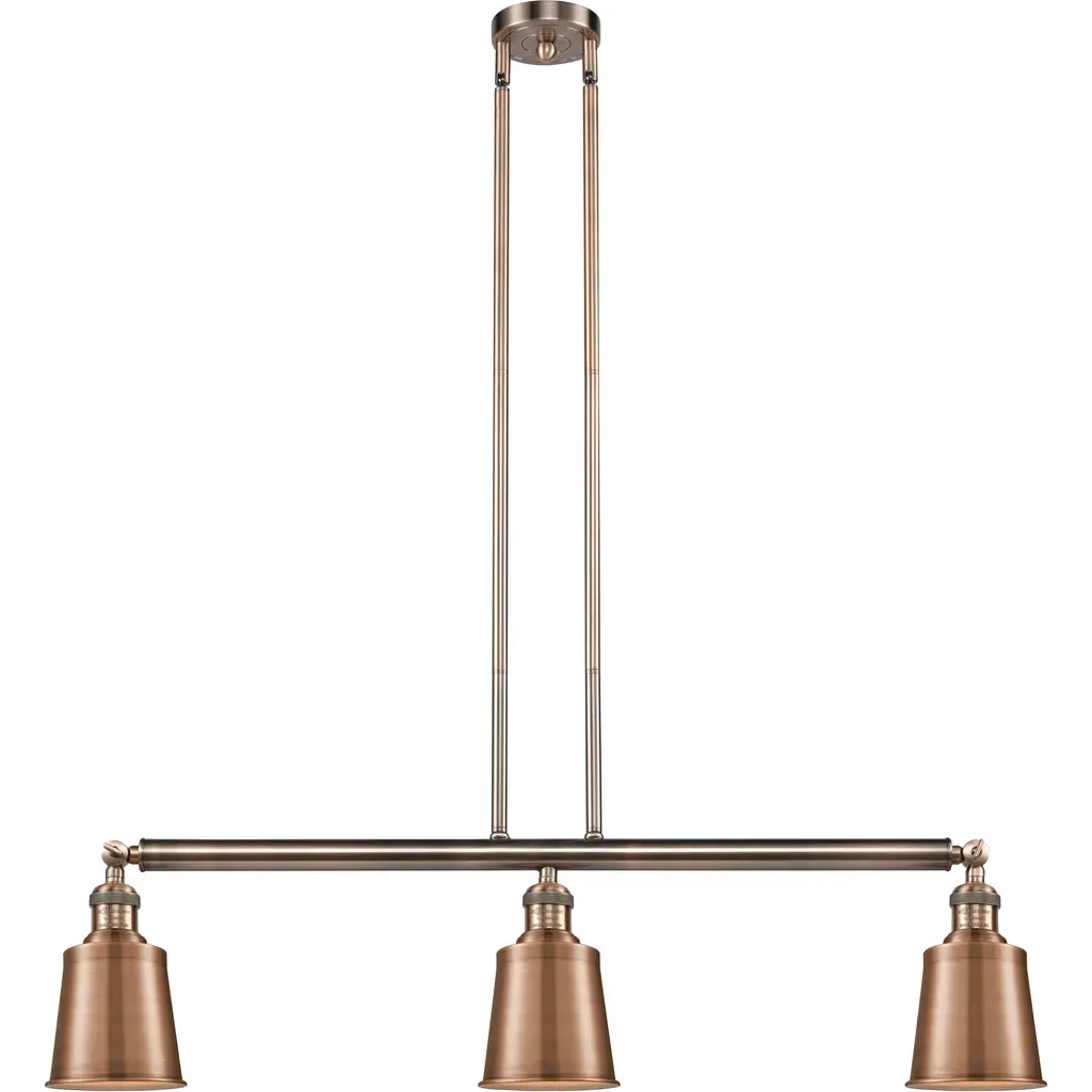 The Small Canton 3 Light Island Light is part of the Franklin Restoration Collection. Includes 2-6 and 4-12 inch Stems With Solid Brass 90 Degree Hang Straight Swivel for Sloped Ceilings. Solid Brass 180 Degree Adjustable Swivels with internal teeth that lock in at 5 degree intervals With Engraved Cast Cup. Solid Brass 90 Degree Hang Straight Swivel for Sloped Ceilings Included