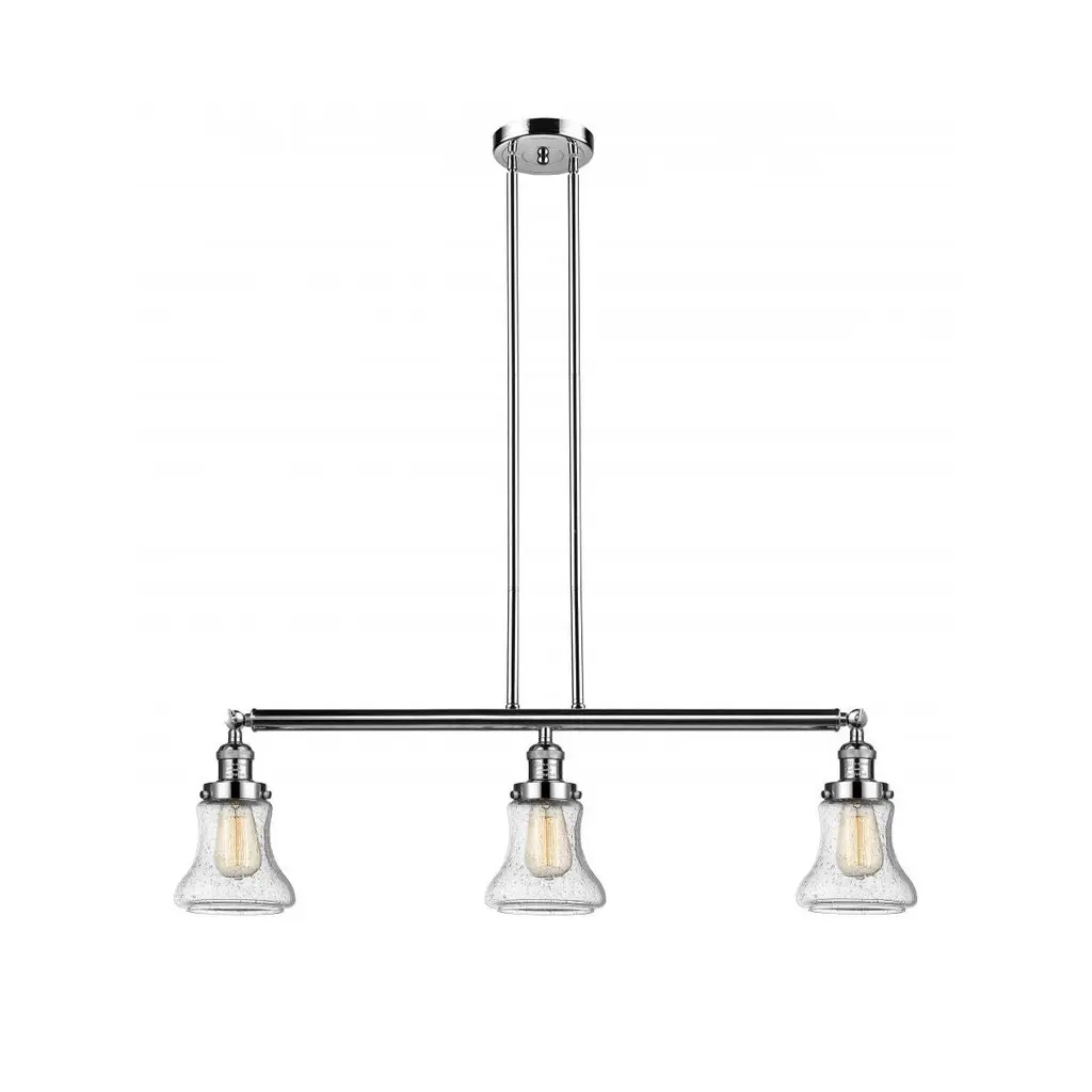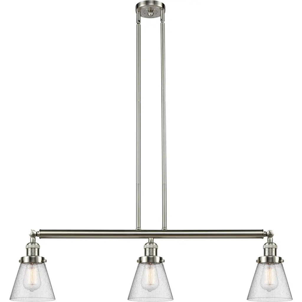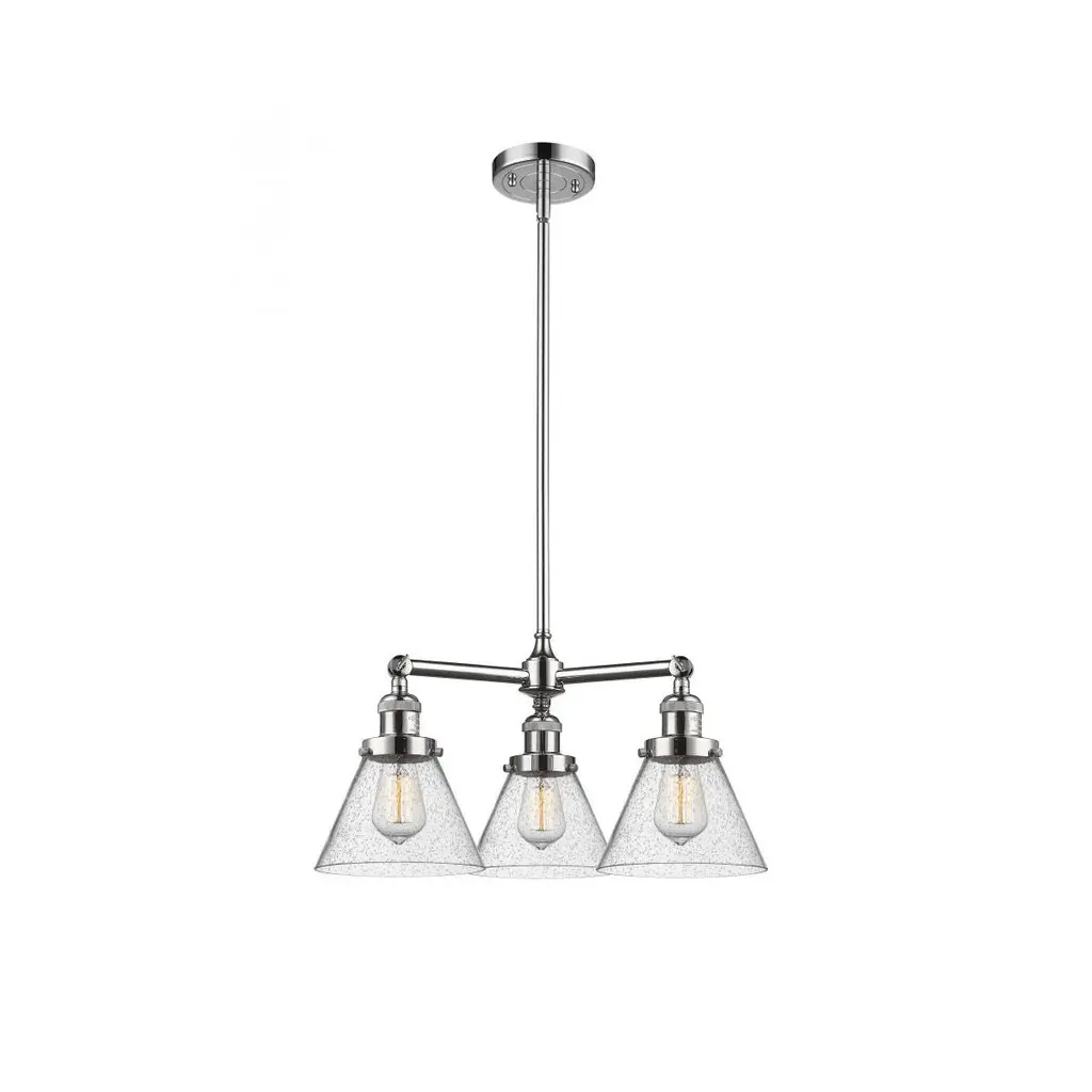 Franklin Restoration Small Cone 3 Light 39 Inch Polished Chrome Island Light Ceiling Light In Seedy Glass, Franklin Restoration