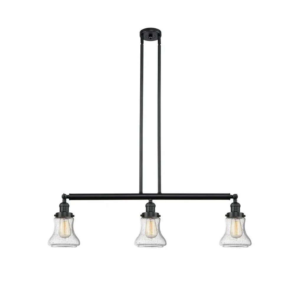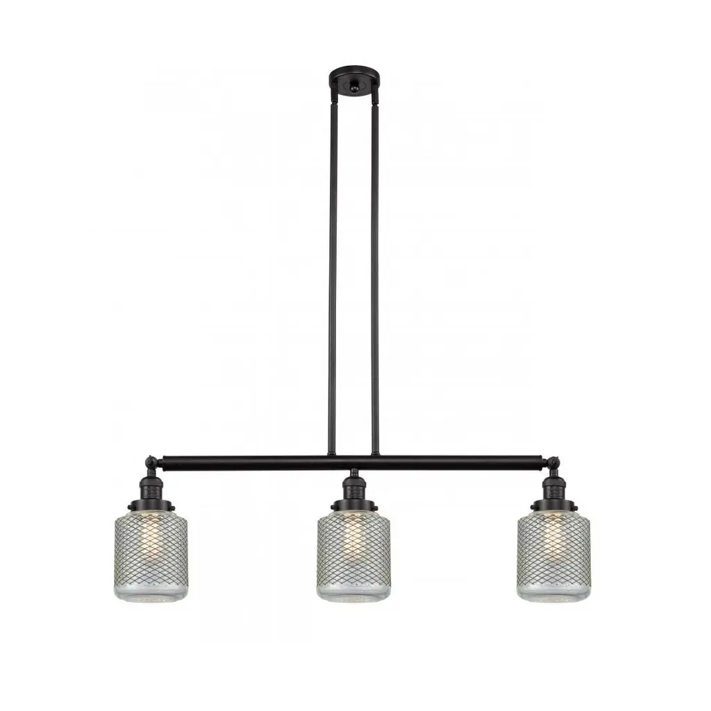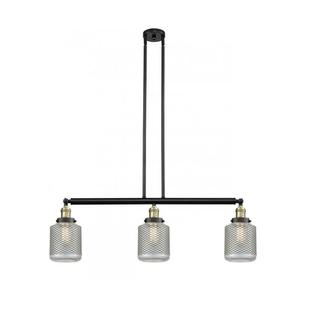 The Stanton 3 Light Island Light is part of the Franklin Restoration Collection. Includes 2-6 and 4-12 inch Stems With Solid Brass 90 Degree Hang Straight Swivel for Sloped Ceilings. Solid Brass 180 Degree Adjustable Swivels with internal teeth that lock in at 5 degree intervals With Engraved Cast Cup. Solid Brass 90 Degree Hang Straight Swivel for Sloped Ceilings Included