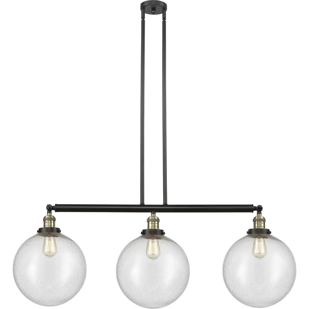 Franklin Restoration X-Large Beacon 3 Light 42 Inch Matte Black Island Light Ceiling Light In Seedy Glass, Franklin Restoration