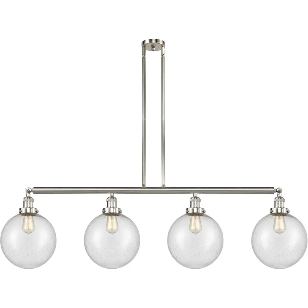 The X-Large Beacon 4 Light Island Light is part of the Franklin Restoration Collection. Includes 2-6 and 4-12 inch Stems. Additional Stems sold separately.. Solid Brass 180 Degree Adjustable Swivels with internal teeth that lock in at 5 degree intervals With Engraved Cast Cup. Solid Brass 90 Degree Hang Straight Swivel for Sloped Ceilings Included