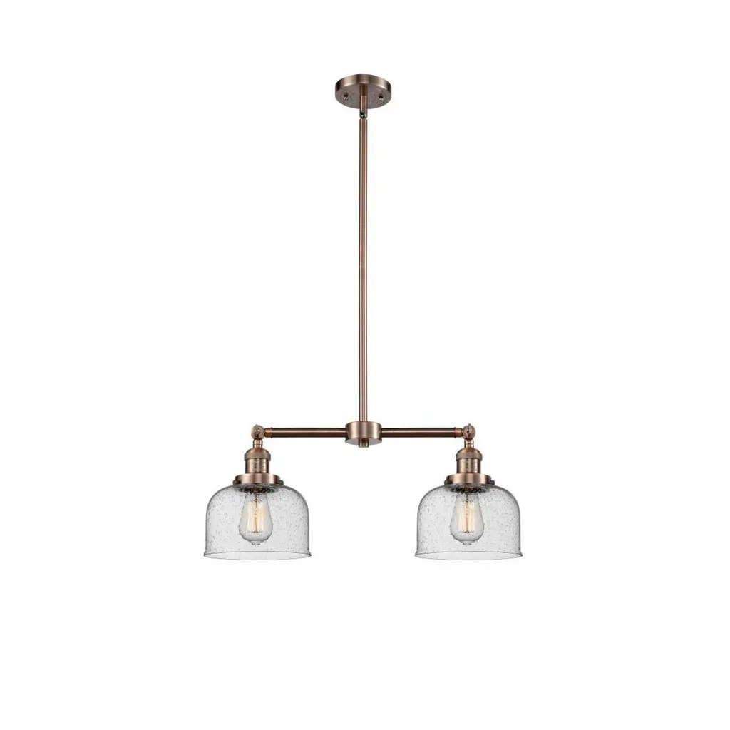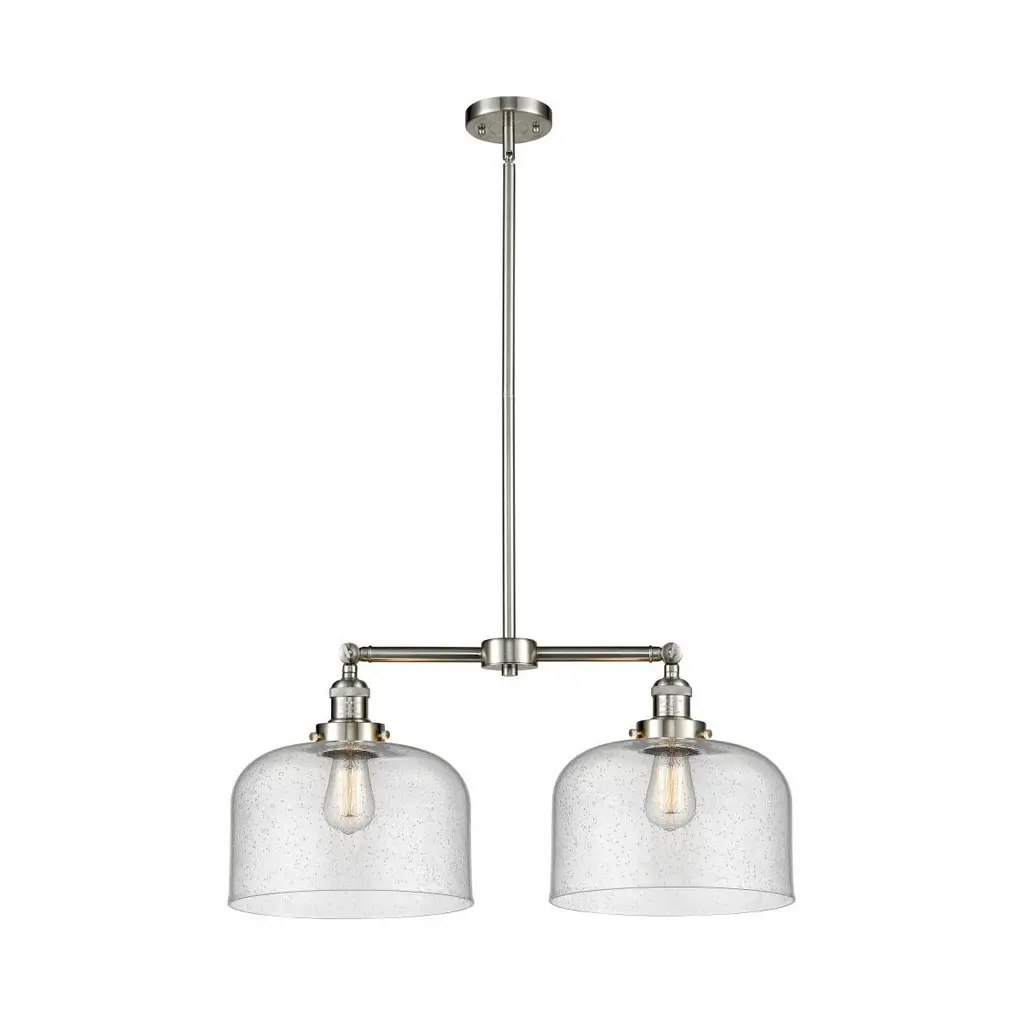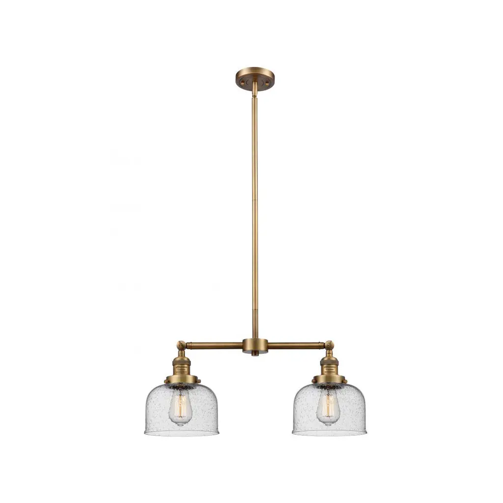 Franklin Restoration X-Large Bell 2 Light 21 Inch Satin Gold Island Light Ceiling Light In Seedy Glass, Franklin Restoration