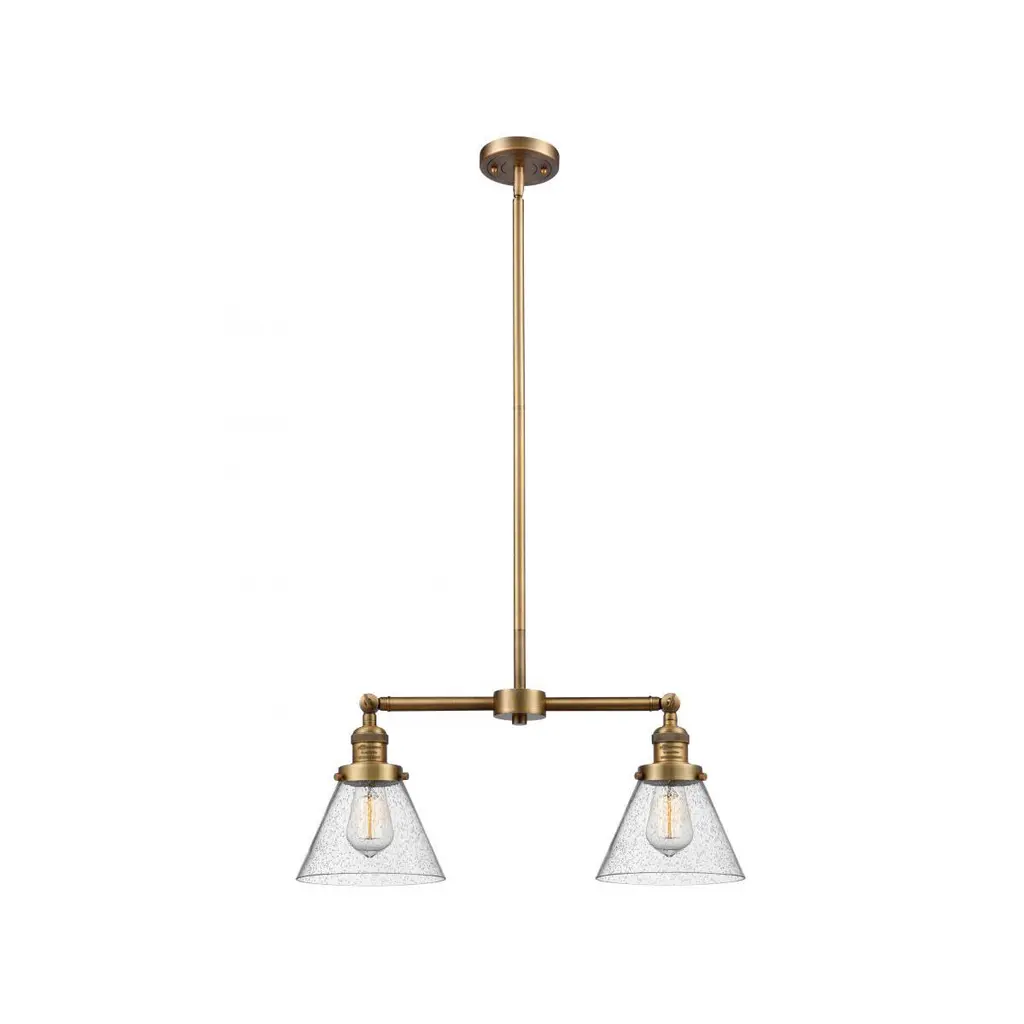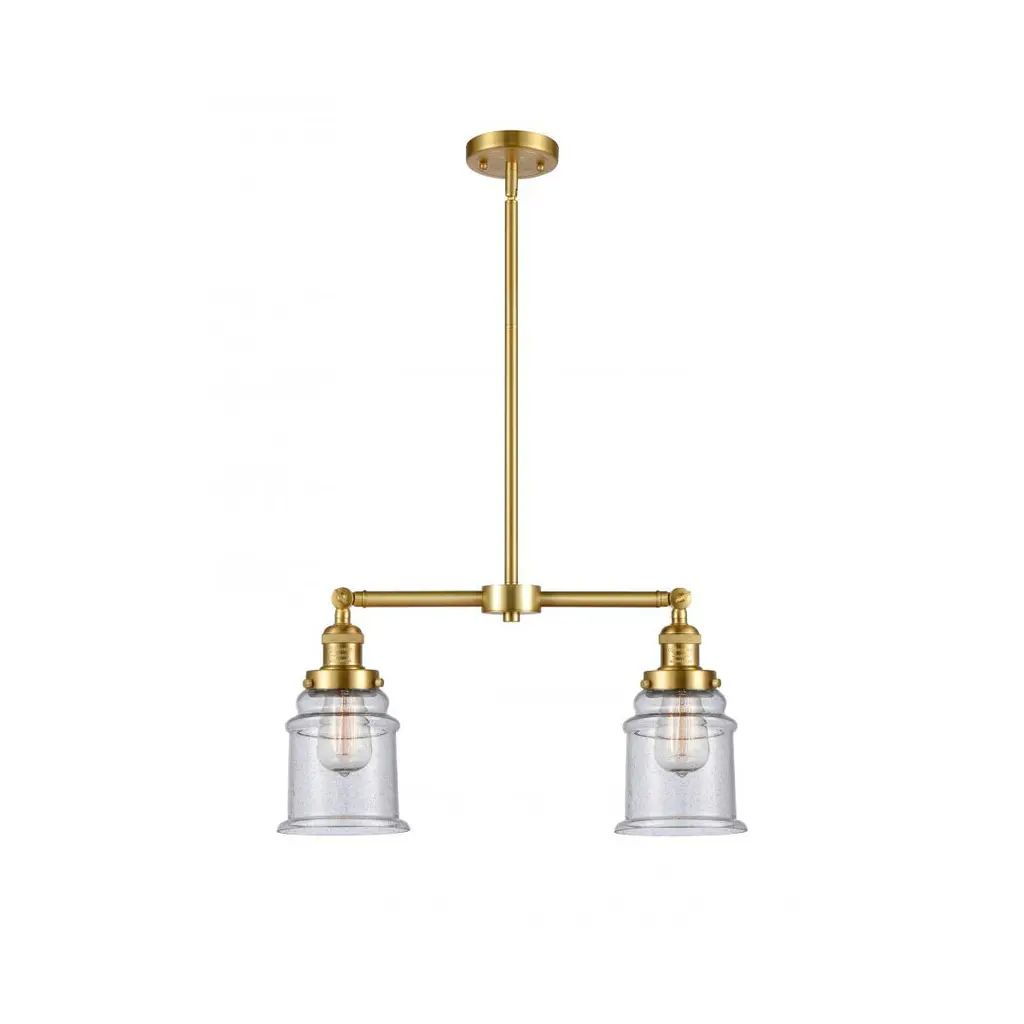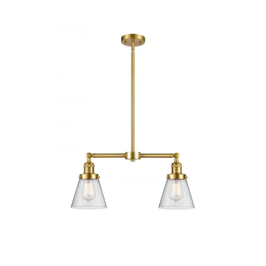 Franklin Restoration X-Large Bell 2 Light 21 Inch Satin Gold Island Light Ceiling Light In Seedy Glass, Franklin Restoration