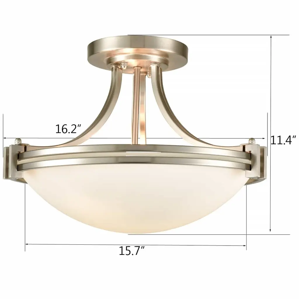 Fucino Brushed Nickel Semi Flush Mount Light Milk Glass Ceiling Light - Brushed Nickel - 2-Light