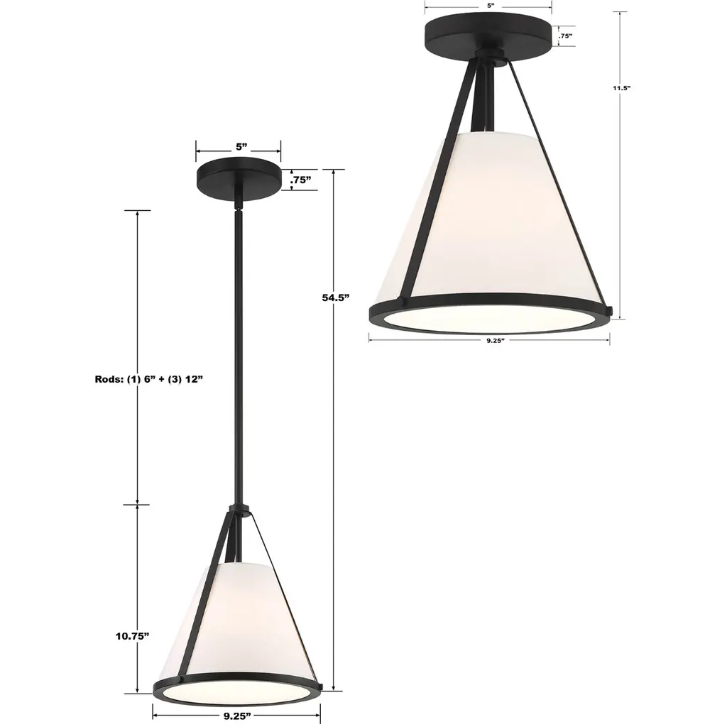 Fulton 1 Light 9.25 Inch Black Semi Flush Ceiling Light