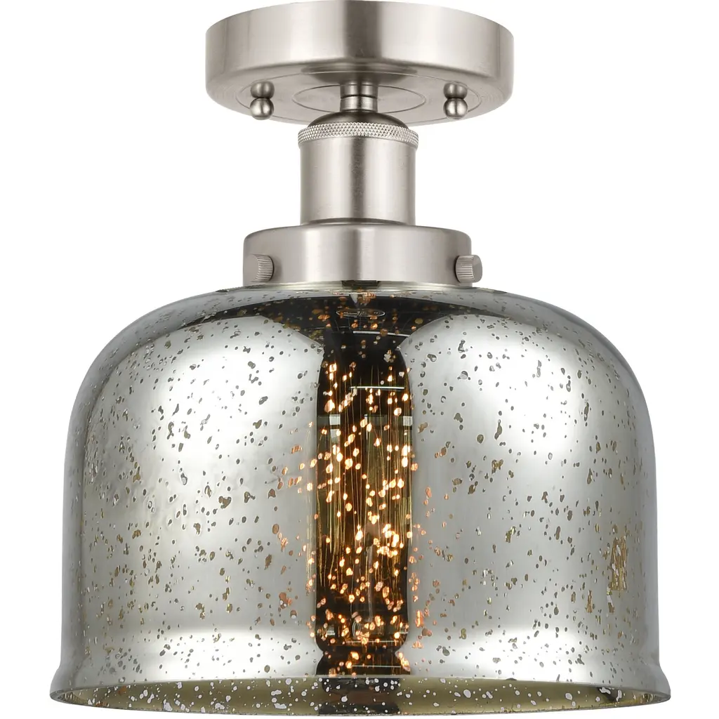Fusion - Finials 3-Light LED 21" Semi-Flush Bowl - Round Bowl Shade - Concentric Square Finials - Opal - Brushed Nickel - Dedicated LED