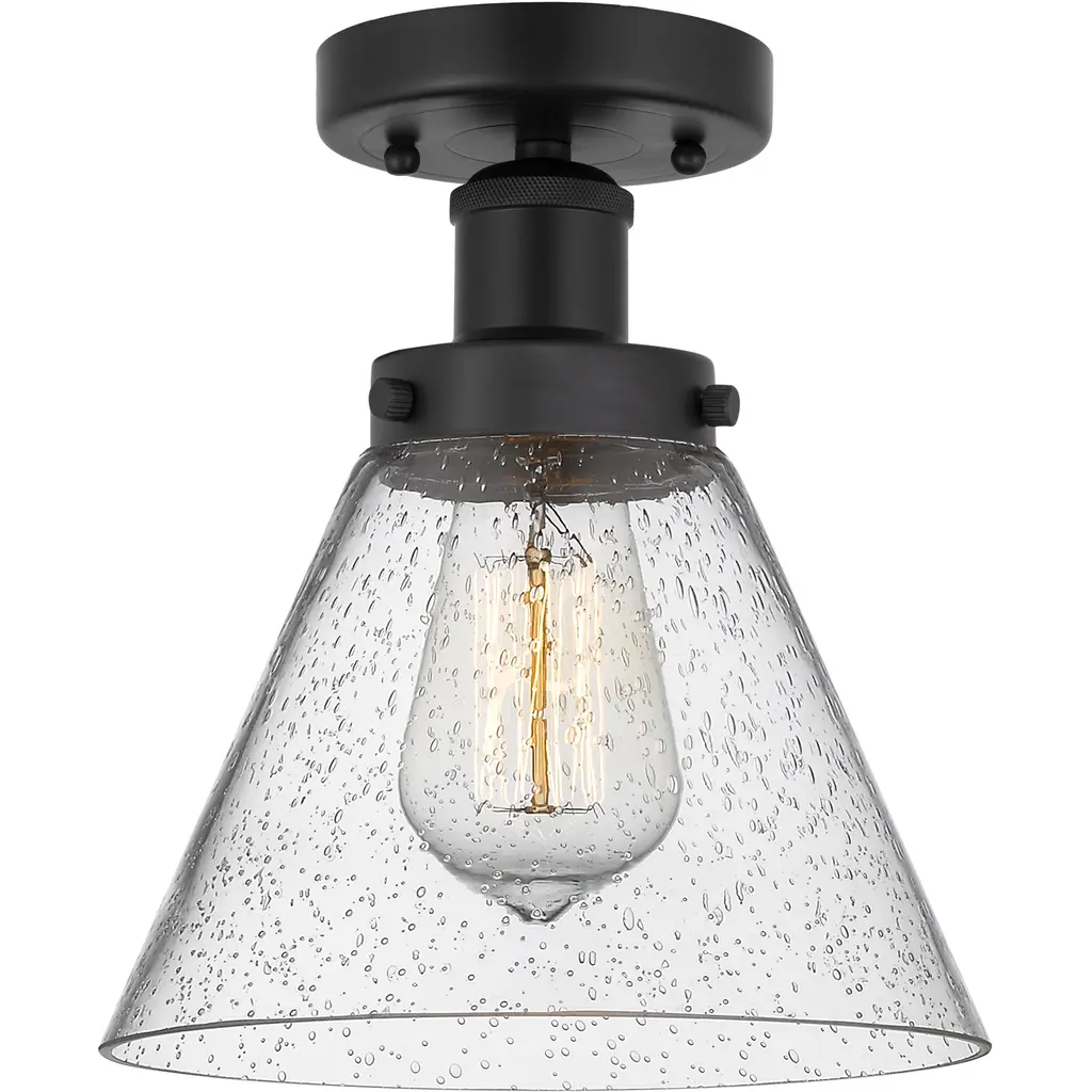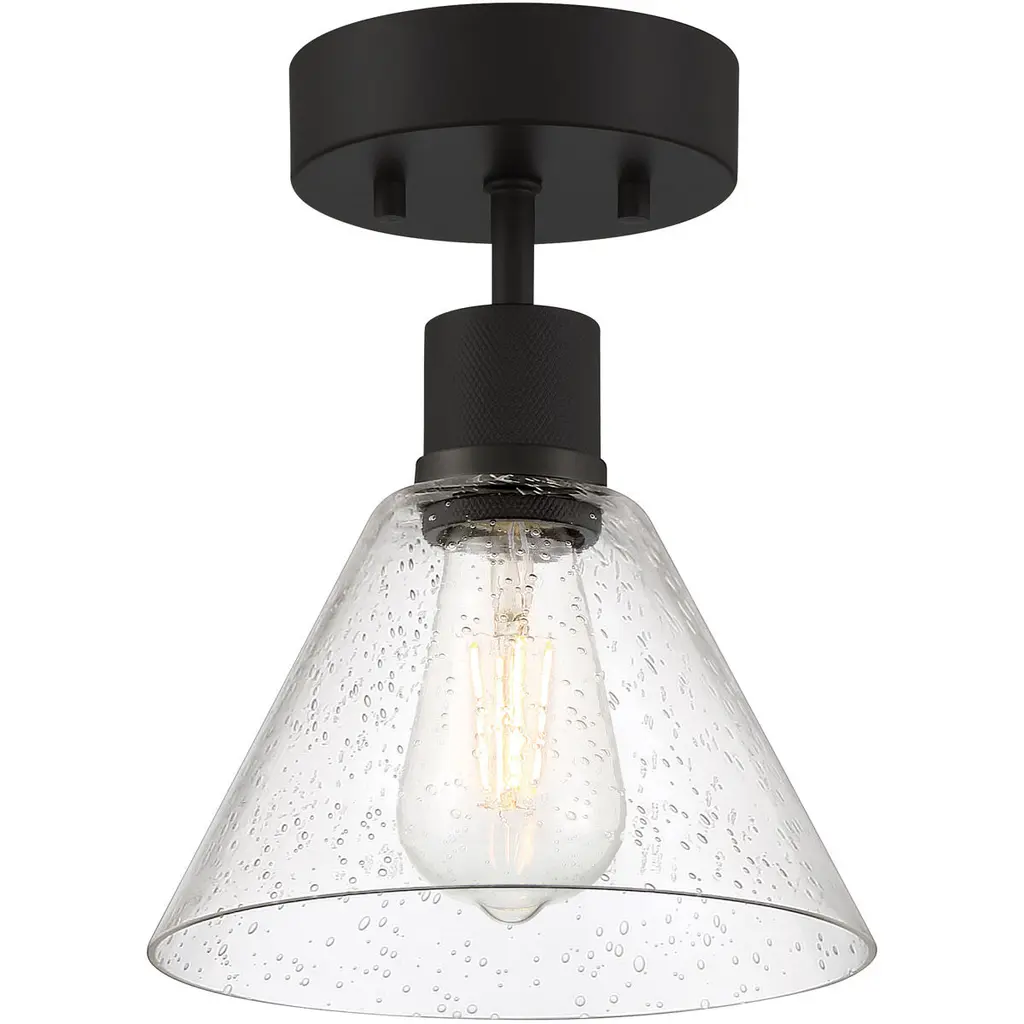 Fusion Collection 1 Light 7.5 Inch Matte Black Semi Flush Ceiling Light, Harlow Family