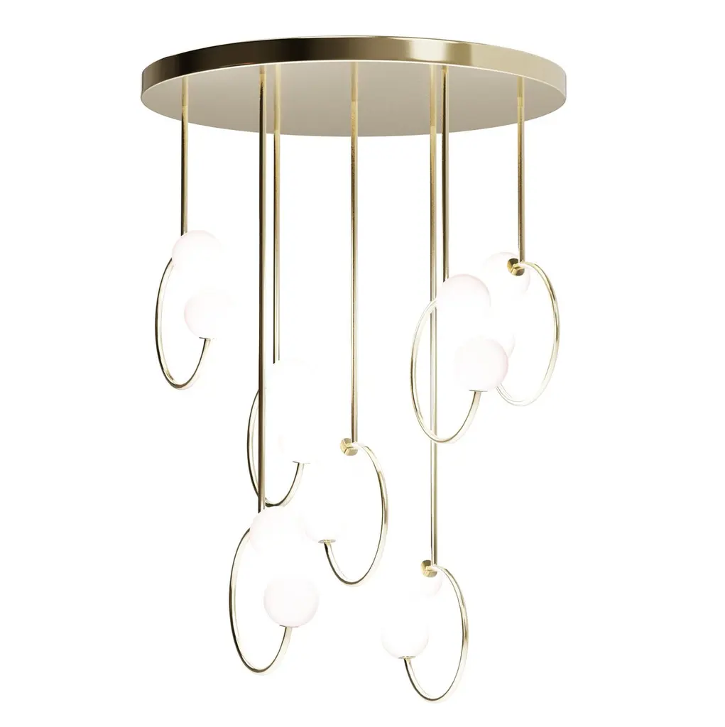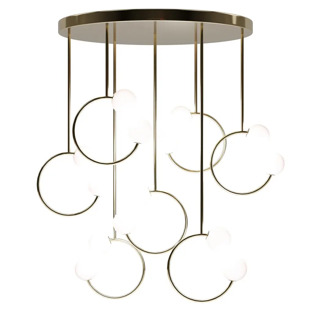 Gaby's dream ceiling lamp, Royal StrangerDimensions: W 90 x D 90 x H 130 cmMaterials: Brass, glass.Finish optionsBody available in brass, stainless steel and copper with polished or brushed finish, or lacquered in all NCS/RAL colors with matte or glossy finish.Inspired by the femininity and using bold and vibrant color schemes, this collection is meant to be positive and happy, celebrating the inner beauty, elegance and superpower of every Women of the World. This graceful and feminine ceiling lamp is a very elegant way to lighten your space. A statement piece that will increase the wow factor and upgrade a glamorous space.As picture: Composed by brass and white glass balls.MetalsBrass, copper or stainless steel in polished or brushed finish.As picture: Composed by brass, handmade and hand painted ceramic pieces and silk striped lampshade with a golden and vibrant interior.Royal stranger is an exclusive furniture brand determined to bring you the best unique pieces of art and design.Fusing design, art and the best craftsmanship, they strive to deliver the best state of the handmade art furniture. The design team works every day to create meaningful products that represent values such as passion, function, aesthetics and know-how. Values that are meant to represent Royal stranger’s DNA. This dedication is present at all stages of production and the combination of craftsmanship and innovative design contributes toour final purpose: to produce certified high-quality products, made with passion and expertise and using royal materials such as gold leaf, rich woods and high quality lacquers.It was in 2013, as an architects, that Sofia Santos & Rui Santos started to push the boundaries of innovation in several retail design concepts for some of the best stores in Portugal. This will has always been present in their work, and that’s how the brand was born.