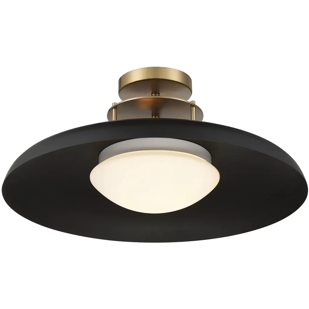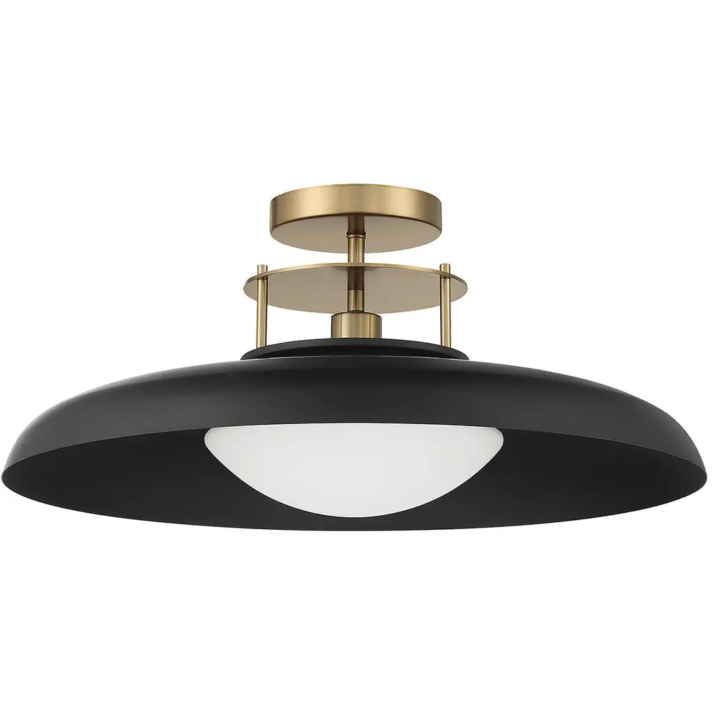 This Savoy House Gavin 1-light ceiling light brilliantly combines vintage and midcentury modern style touches to create a thoroughly modern take on illumination. Gavin uses an opal glass shade and a wide metal shade to soften and direct the light. Finished in matte black with warm brass accents. Gavin is 9" in height and 20" in width. It uses one standard size bulb of up to 60 watts.
