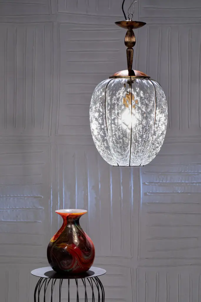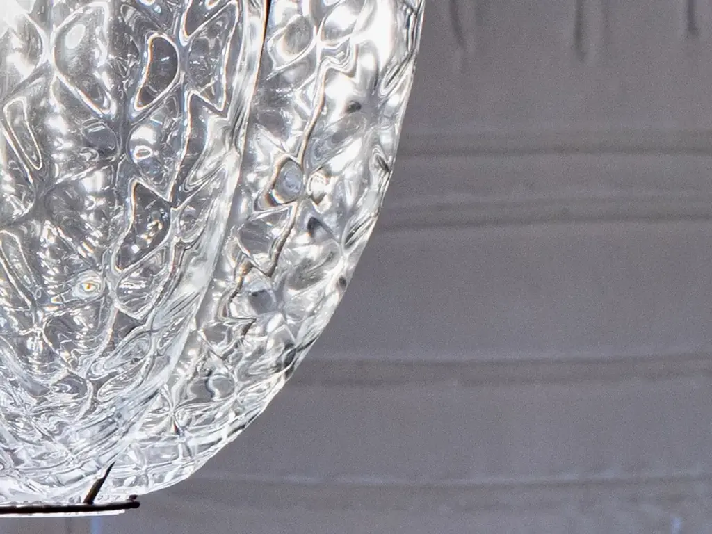 A light and thin cage shaping the blown glass while trying to appear imperceptible. In this collection, the Baloton glass plays the lead role, casting its effect on everything around it.