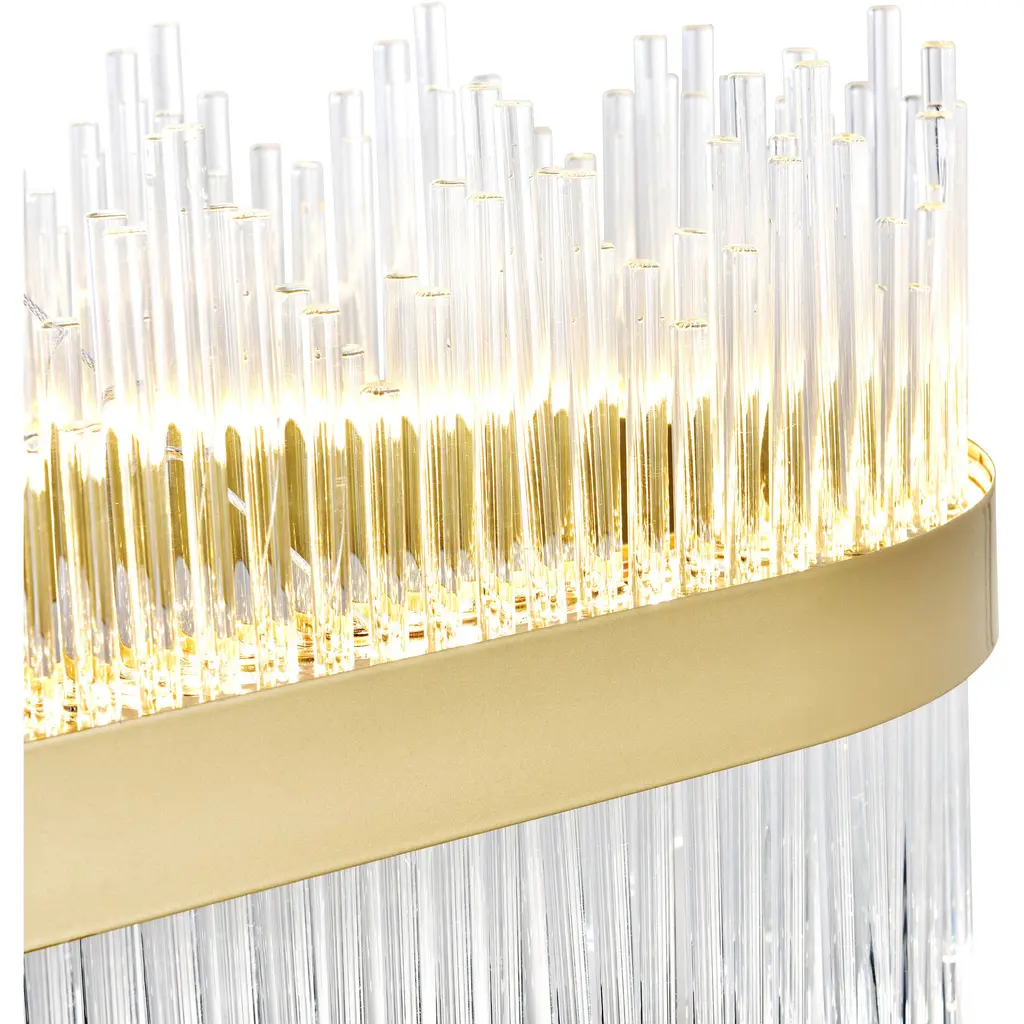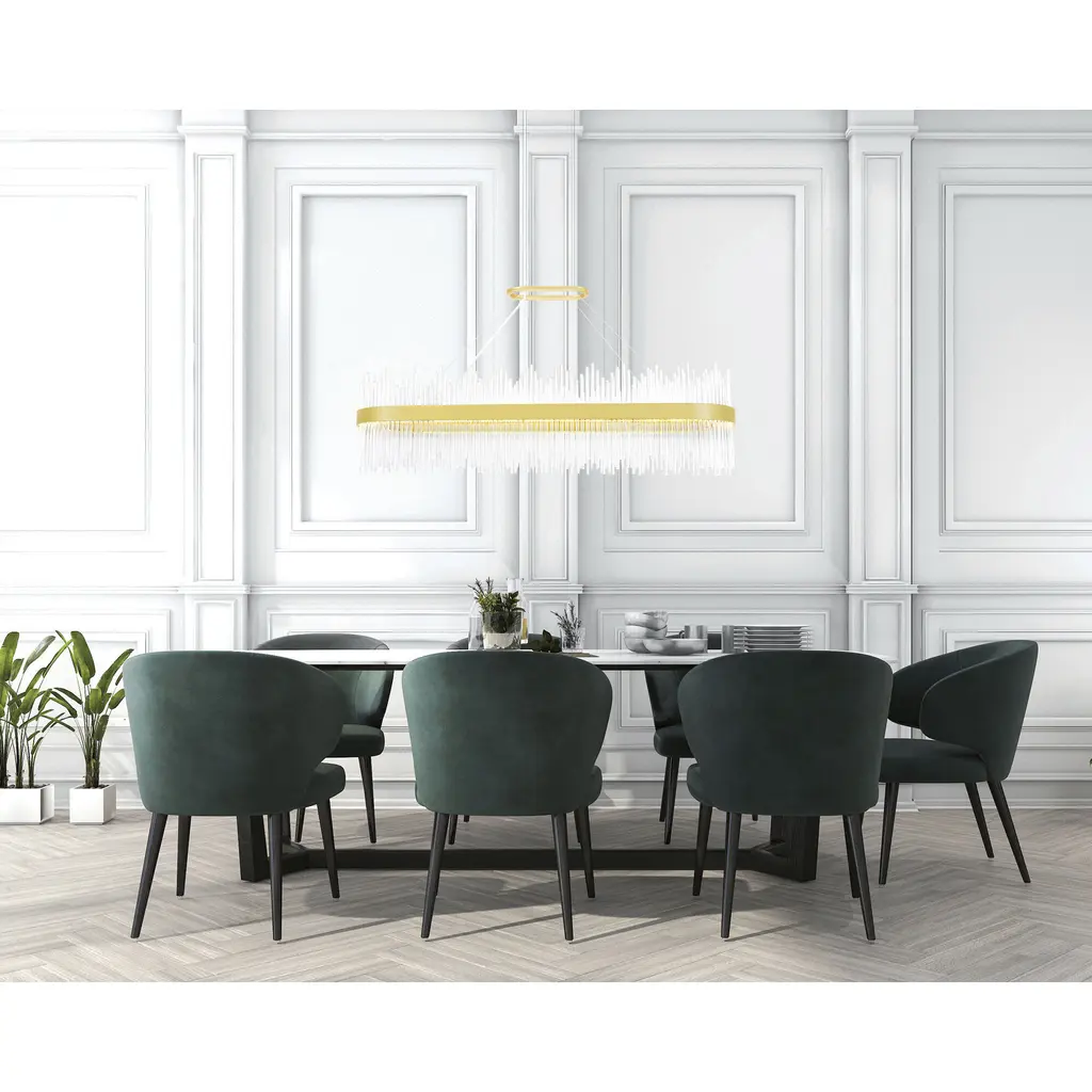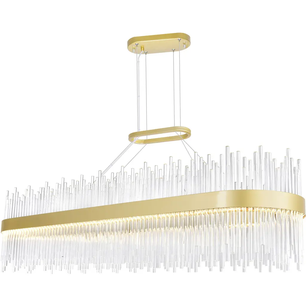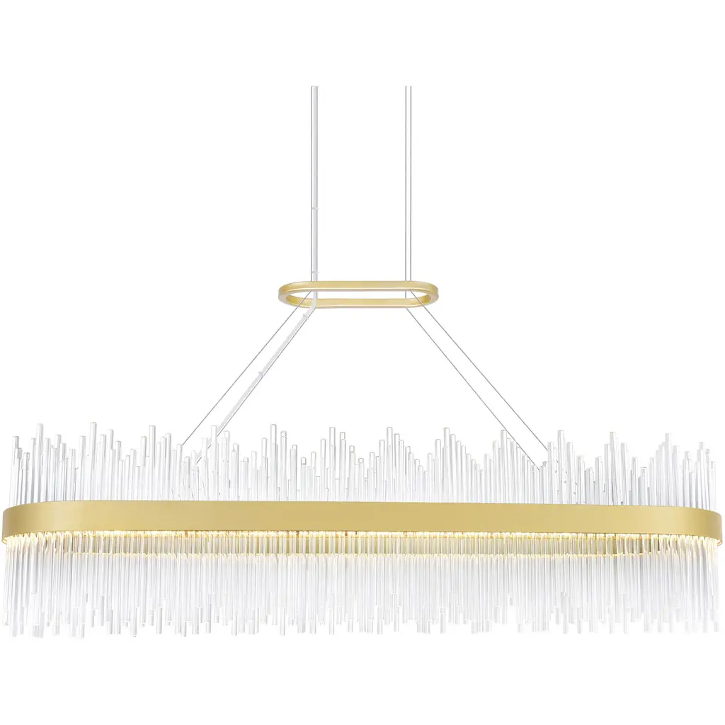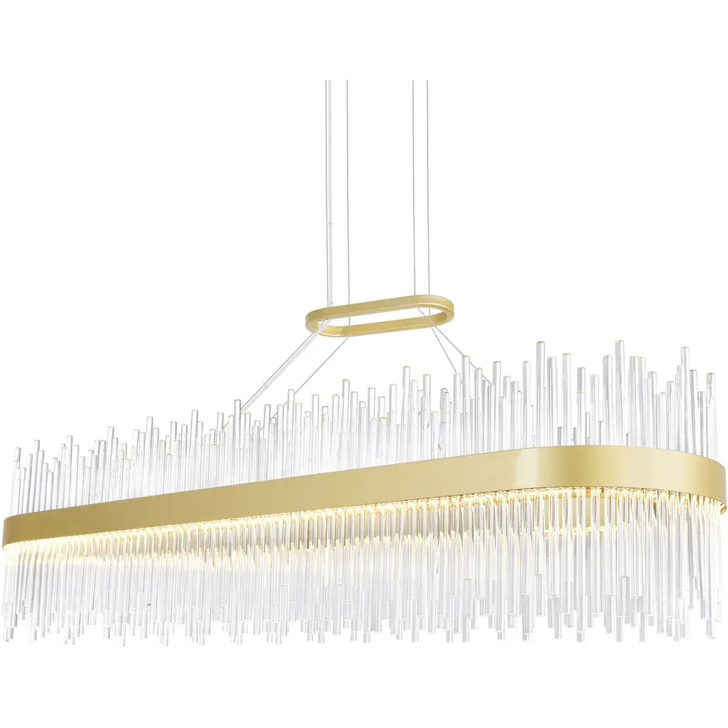 Transform your space with the Genevieve 47" Medallion Gold LED Chandelier. This stunning light fixture features a golden racetrack frame holding a graceful assembly of clear crystals, offering a glistening display of light. Perfect for large spaces like the dining room, gourmet kitchen, or entertainment room, this chandelier will add a striking touch of sophistication to your decor. Finish: Medallion Gold Fixture Width: 47" Light Count: Integrated LED Mount Type: Chandelier