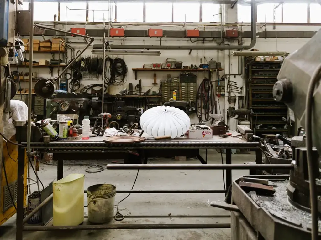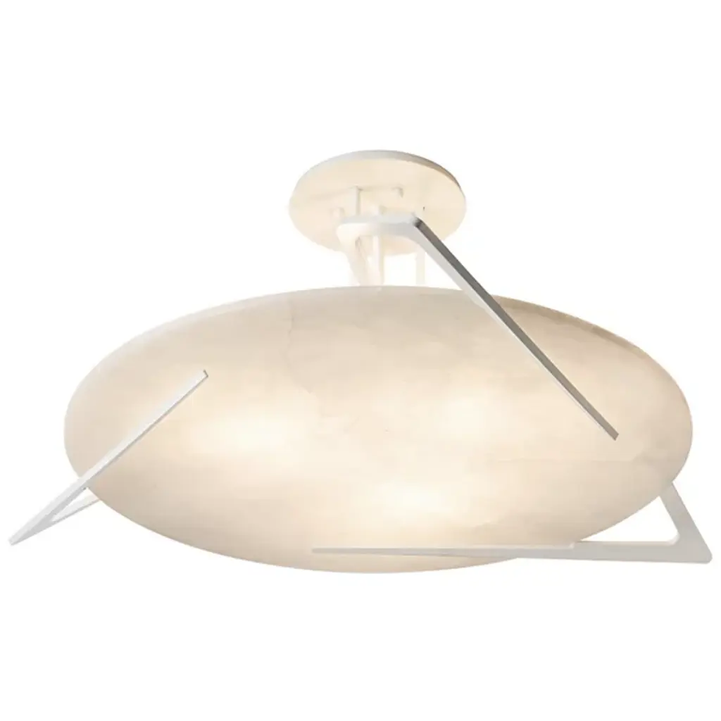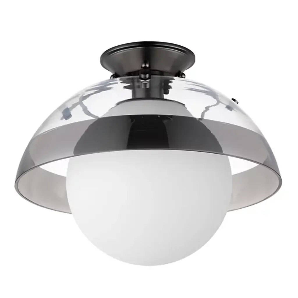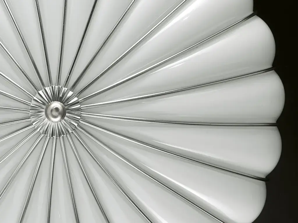 Murano glass ceiling light.It has the shape of a classic ceiling light and an abundance of metal wires conveying that blown glass is not allowed to mutate its shape.
