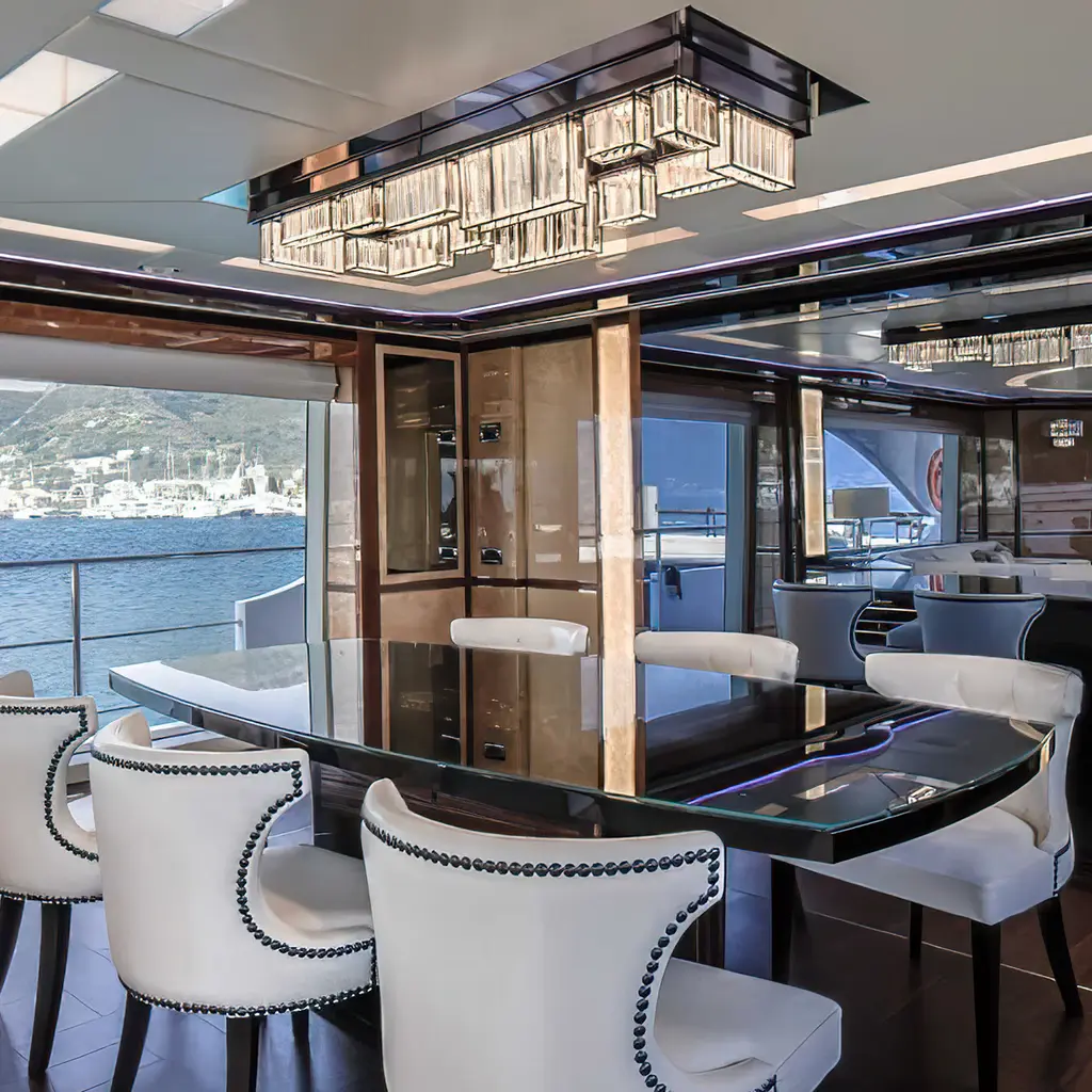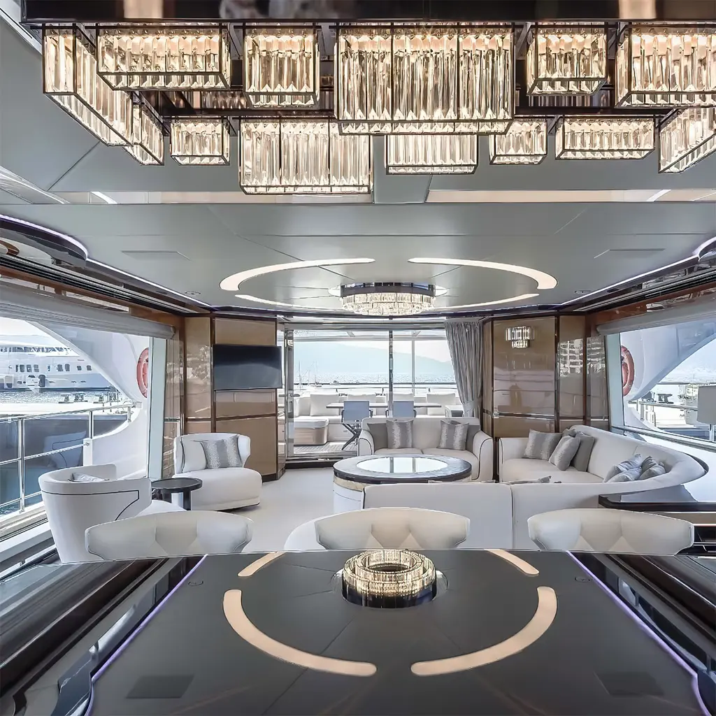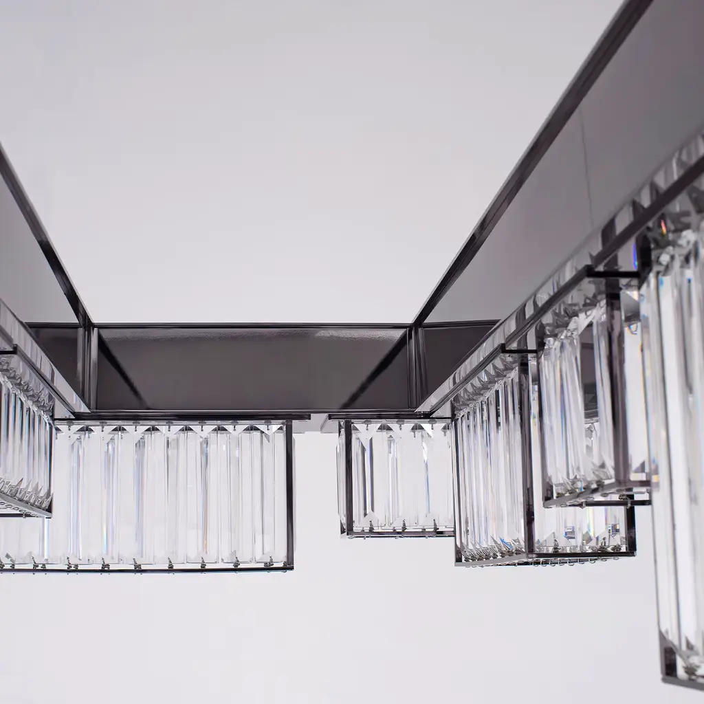 Crystals and a chrome plating are combined together to give emphasis to a geometrical and complex system, composed of modular elements. Gisele lamp offers multiple declinations, like a choreography of bodies in space. An innovative design inspired by art dèco, which combines new technology with aesthetic reasons: the entire structure is created in steel with a laser-cut and the lights are dimmable leds. Led ceiling lamp, led stick 24VDC - 63W, 3000°K supplied, dimmer wifi included.