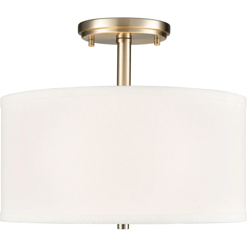 The Guyton Family of semi-flush and flush-mount lighting is defined by the crisp, white fabric shades, providing a warm and diffused effect. These fixtures are the perfect choice for an understated and polished design statement in any interior scheme, from ultra-modern to Art Deco. Whether selecting the matte black, brushed nickel, or modern gold finish, these 2-light fixtures provide the perfect glow for the foyer, hallway, or bedroom.