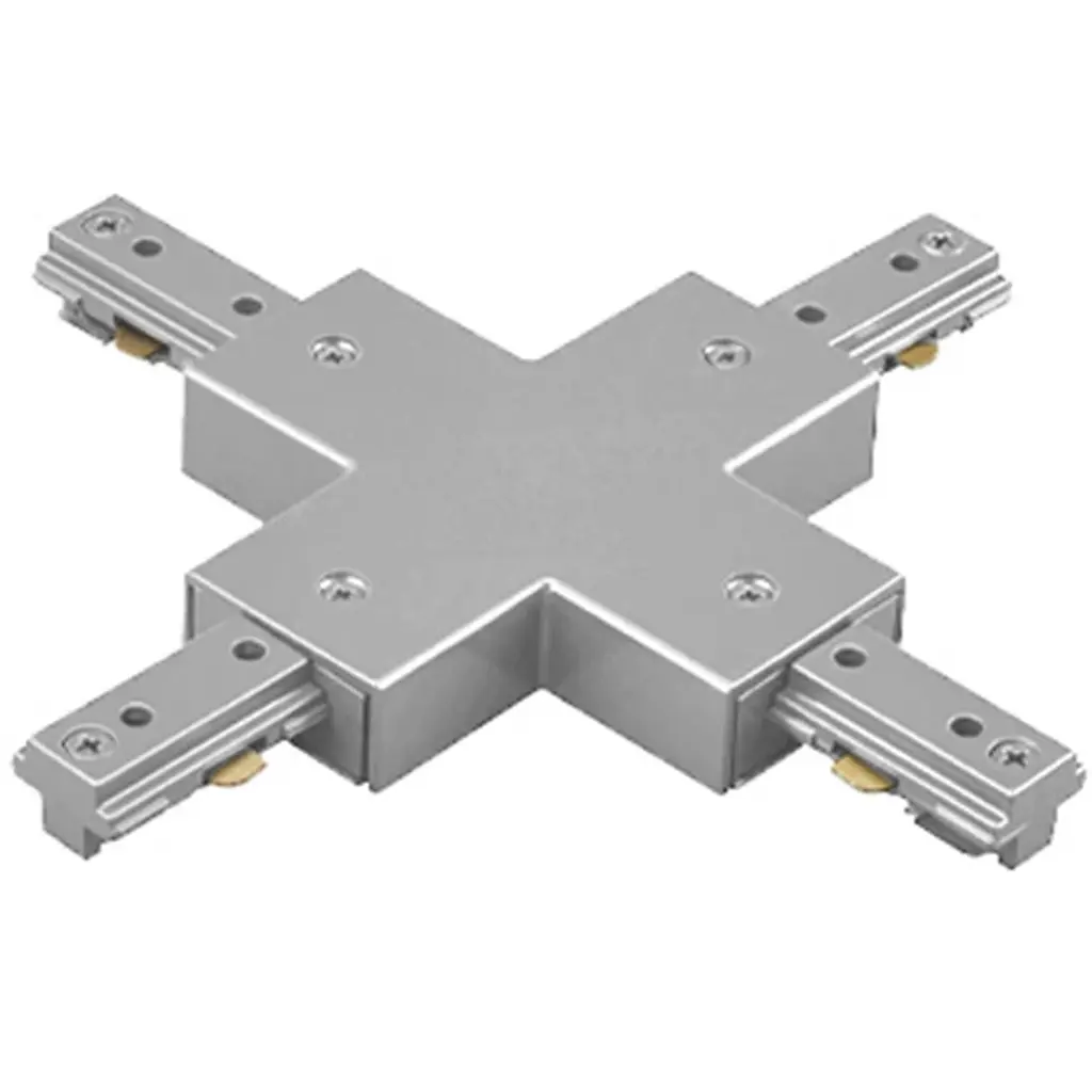 120V Track systems are modular and can be designed for multiple applications in nearly any interior environment. X-Connectors are used to join four pieces of track together with power continuity to form an X Shape. X-connectors are power feedable when aligned beneath a junction box.