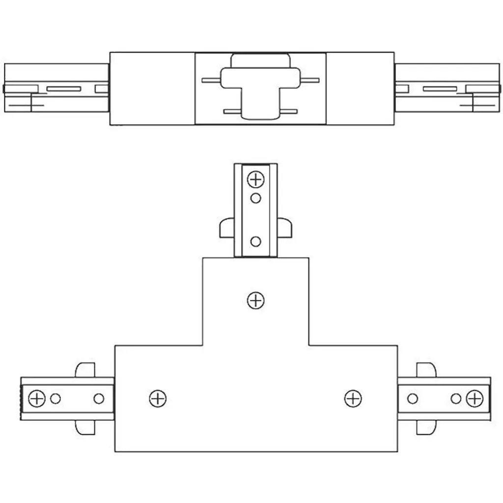 120V Track systems are modular and can be designed for multiple applications in nearly any interior environment. T-Connectors are used to join three pieces of track together with power continuity to form a T Shape. T-connectors are power feedable when aligned beneath a junction box.