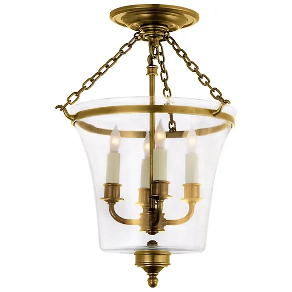 In 1887, England declared an imperial holiday to commemorate Queen Victoria’s 50th year on the throne—her “golden jubilee.” Public celebrations occurred across the empire. Photographs from India show a distinctive array of glass lanterns illuminating the occasion, representing the hybrid of Anglo and Indian design sensibilities. Hampton reproduces these historic, mouth-blown glass lanterns. While the oversized bell jar originally held a reservoir of whale oil, we suspend a candelabra array to provide warm light without the mess. The upper shade deflected the oil’s thick smoke to prevent it from staining the ceiling. Hampton comes in four metal finishes and three glass options, allowing you to customize the look to your own décor.