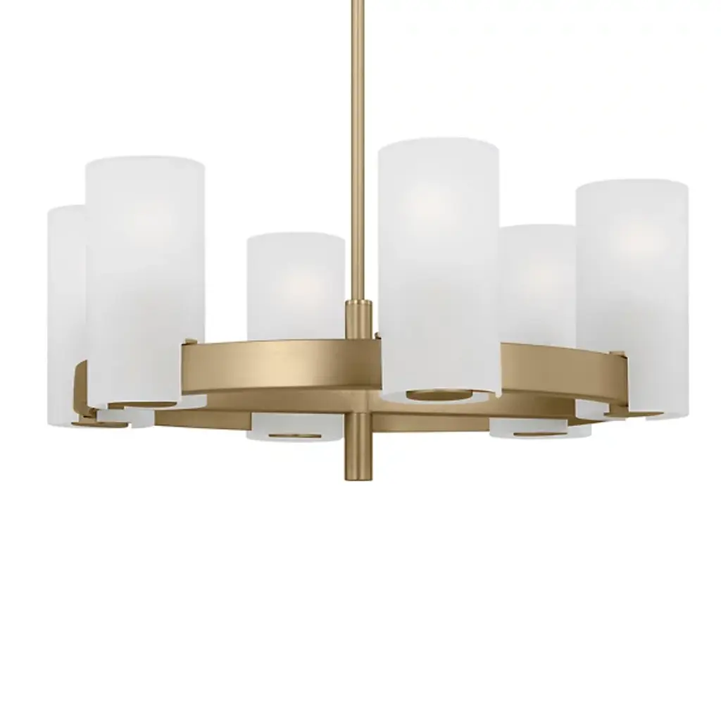 Illuminate any room with the bold modern style of the Savoy House Herron 4-light ceiling semi-flush mount. Its sleek, round structure wears a Warm Brass finish and is decorated with cylinders of swirling, stunning strie glass. Herron is 12" in height and 24" in width. It uses four standard size bulbs of up to 60 watts per bulb. Bulbs not included.