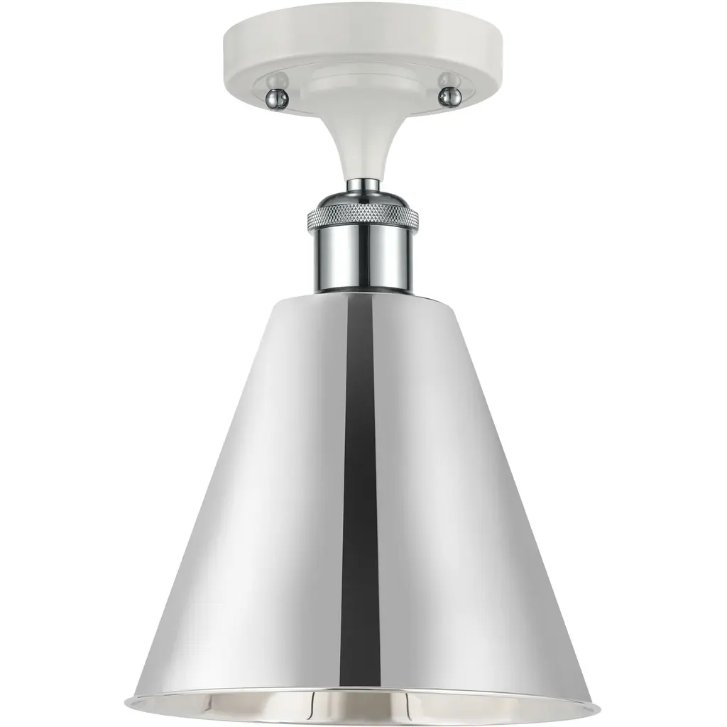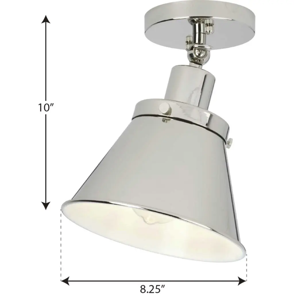 Embrace stylish simplicity with the Hinton Collection 1-Light Polished Chrome Vintage Semi-Flush Mount Ceiling Light. The circular ceiling plate and industrial light base are coated in a polished chrome finish. A light source glows from inside a metal shade that provides effective task lighting wherever focused illumination is called upon.