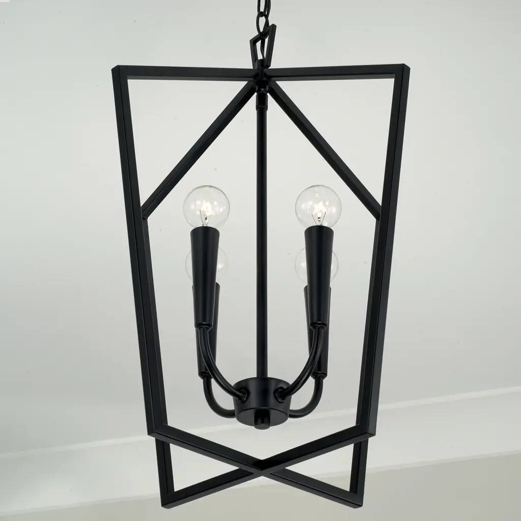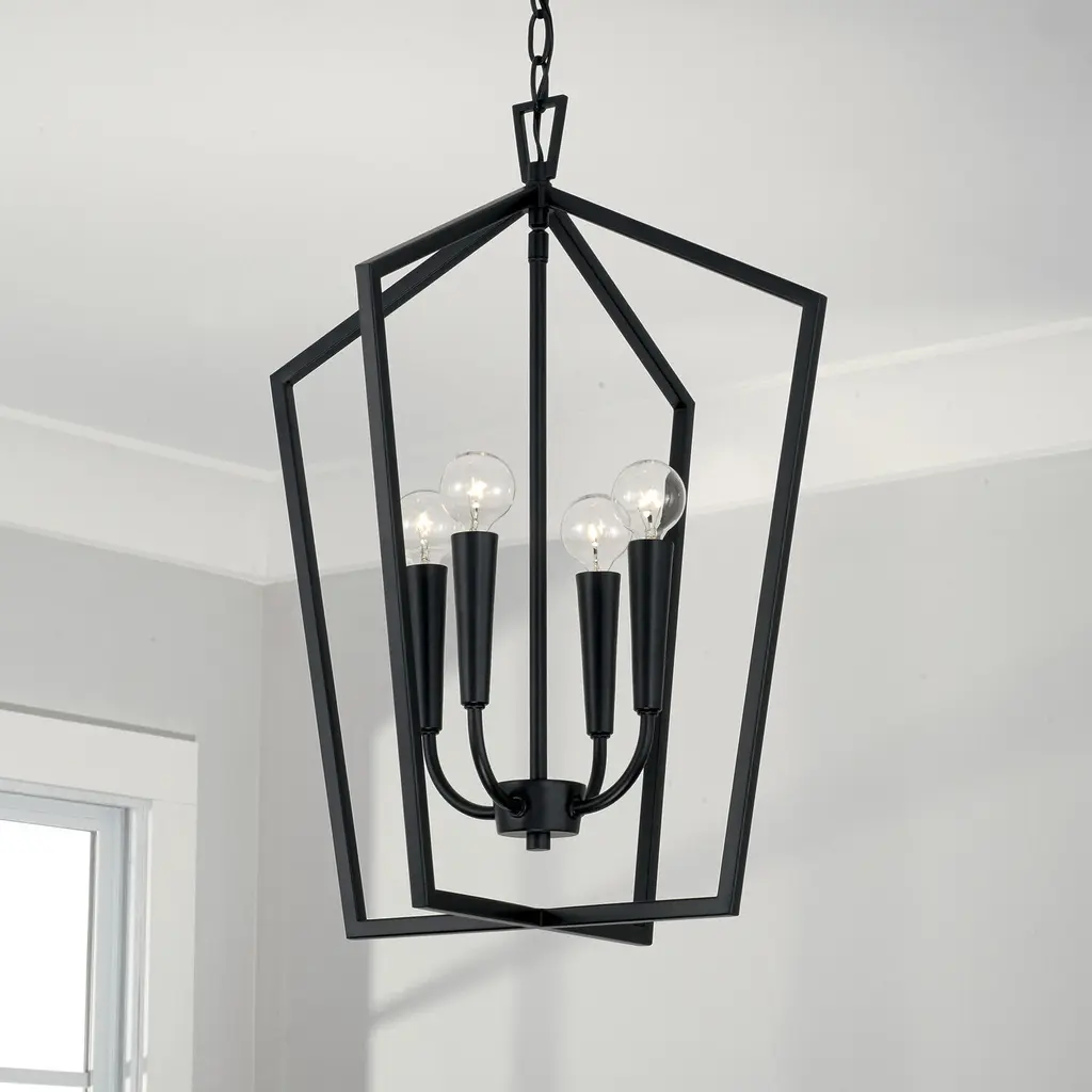 With a classic elegance that commands attention, the Holden Foyer adds sleek sophistication to any space. The tapered candle sleeves in an Matte Black finish adds designer style to the familiar lantern silhouette.
