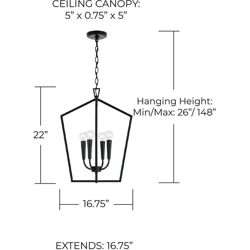 Holden 4 Light 17 Inch Matte Black Foyer Ceiling Light