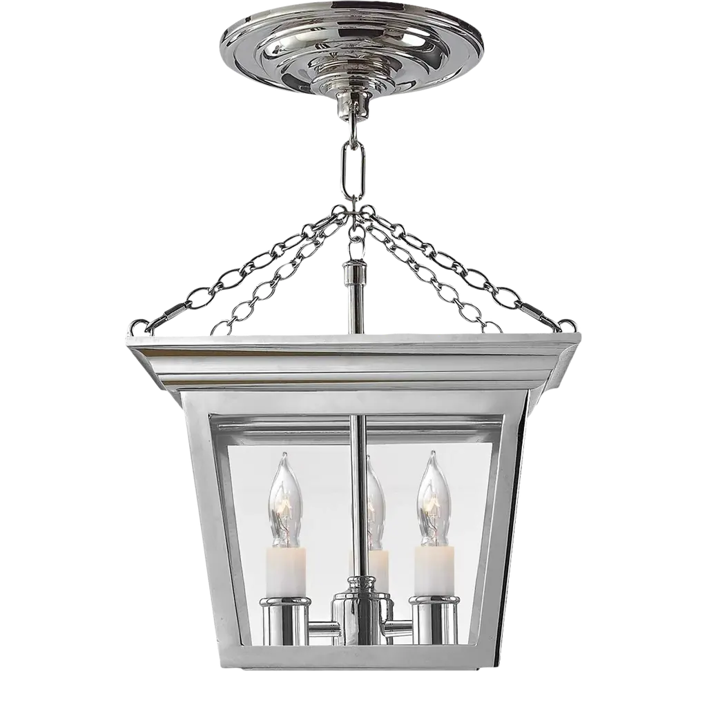 Couching a candelabra in a glass lantern, then strengthening the piece with a metal surround, Hollis hearkens back to a classic lighting design while finding a way to make it feel new.