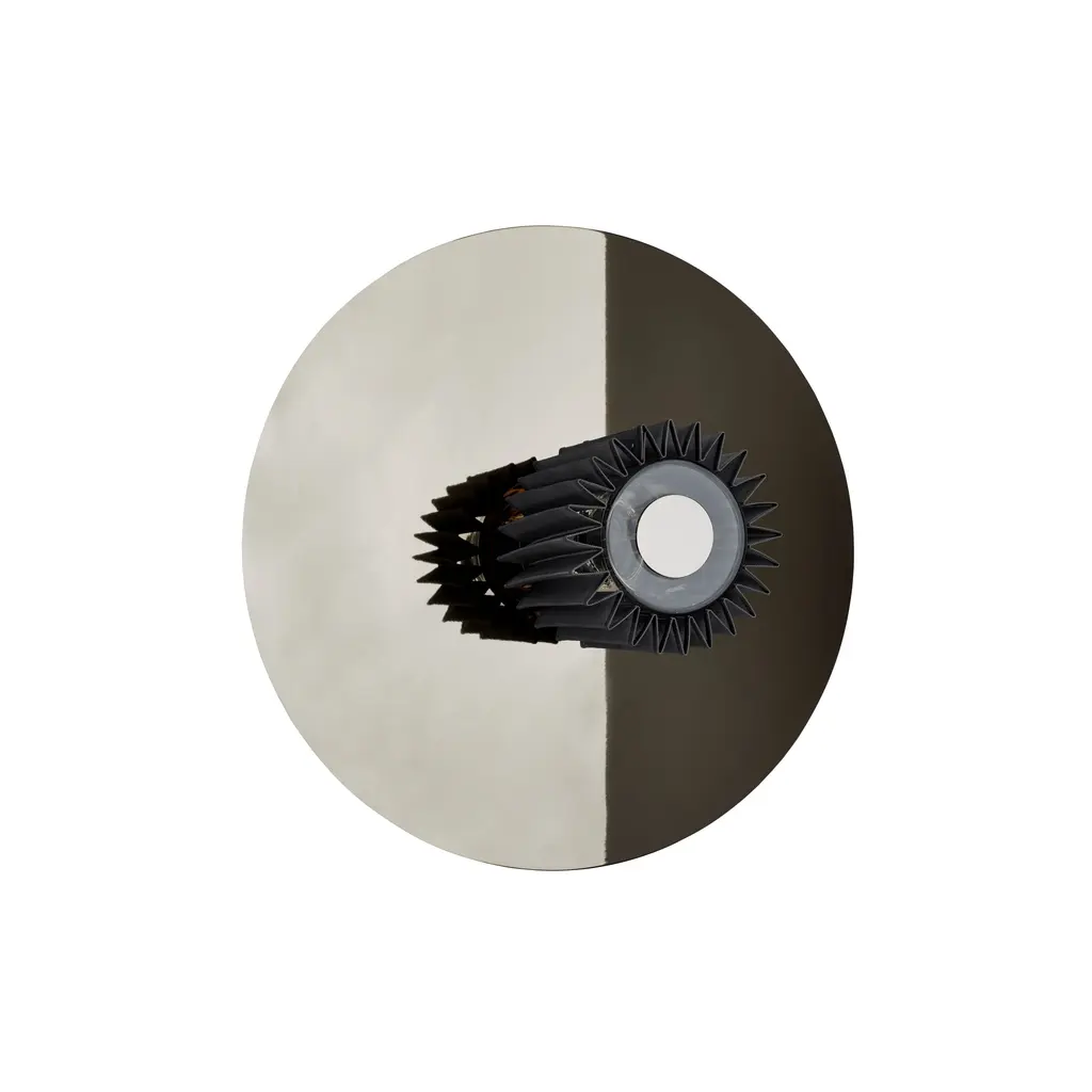 To mount on the wall or ceiling, In The Sun gleams with royal hues of silver and gold in an homage to France's Louis XIV, the 17th century Sun King. Architect-designers Dominique Perrault and Gaëlle Lauriot-Prévost configure a metal-disc backplate to reflect the warm glow from the starburst metal mesh diffuser for mood-setting atmosphere. With 3 available diameters, the light is striking on its own or perfect for displaying in assorted combinations of sizes and the varied metallic finishes.