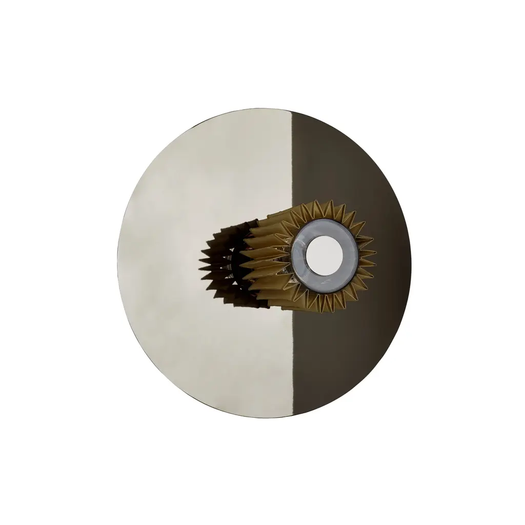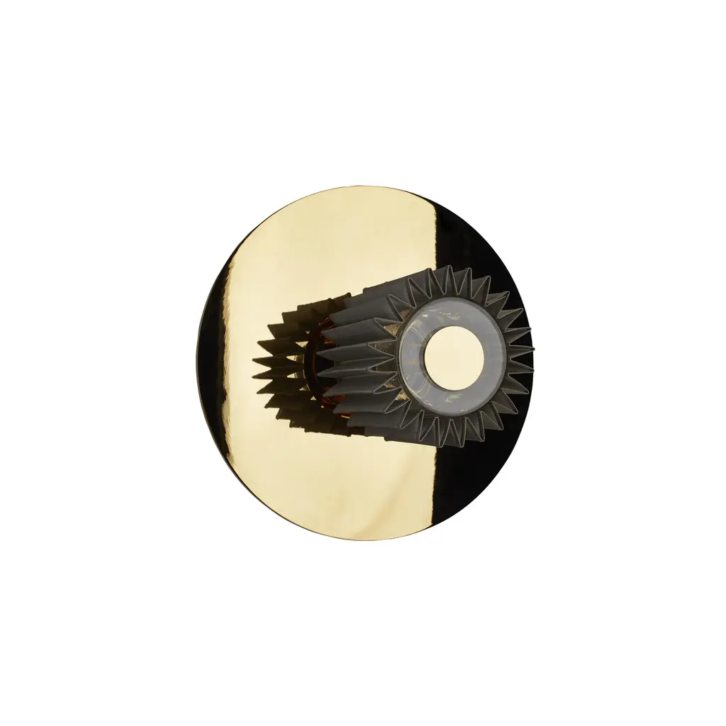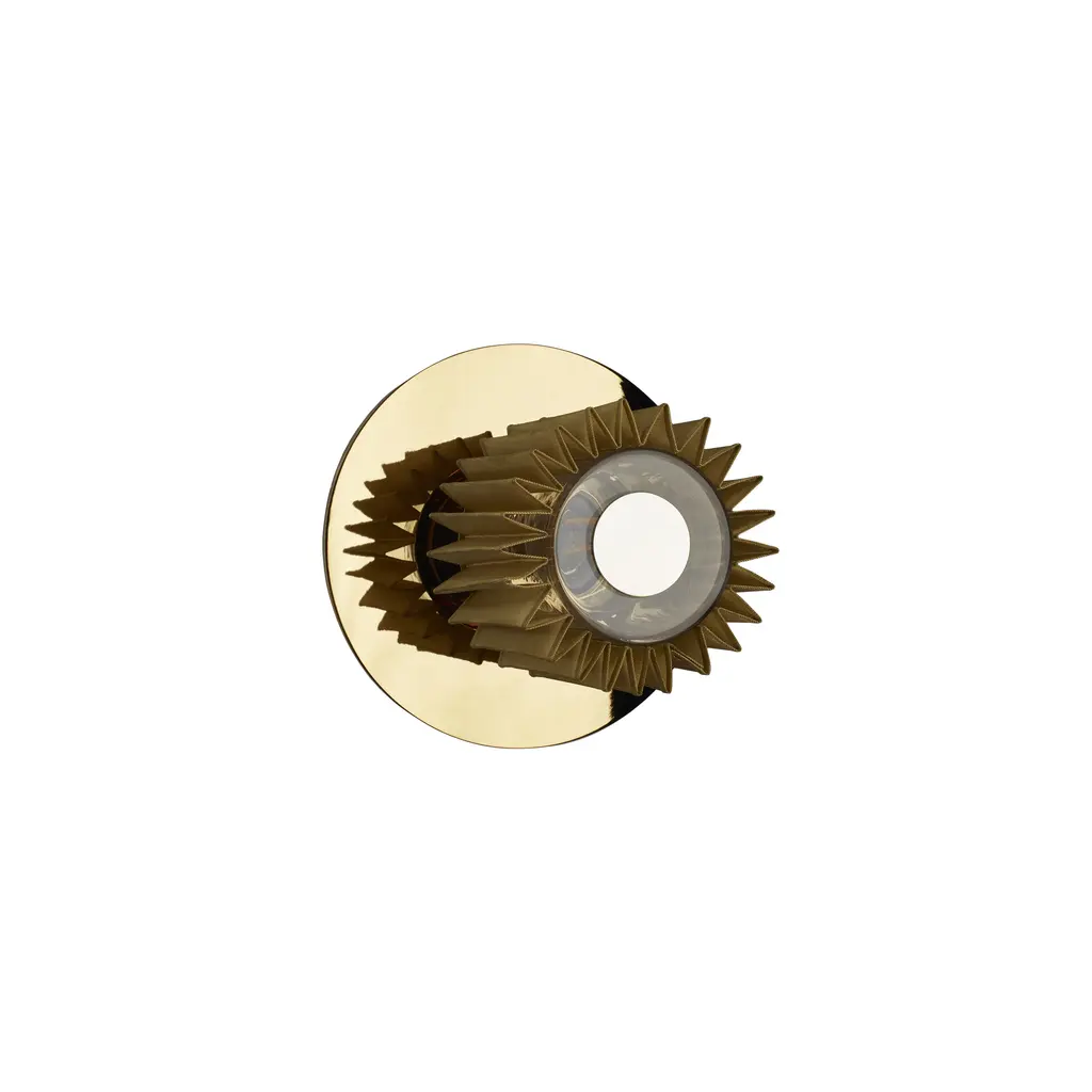 To mount on the wall or ceiling, In The Sun gleams with royal hues of silver and gold in an homage to France's Louis XIV, the 17th century Sun King. Architect-designers Dominique Perrault and Gaëlle Lauriot-Prévost configure a metal-disc backplate to reflect the warm glow from the starburst metal mesh diffuser for mood-setting atmosphere. With 3 available diameters, the light is striking on its own or perfect for displaying in assorted combinations of sizes and the varied metallic finishes.