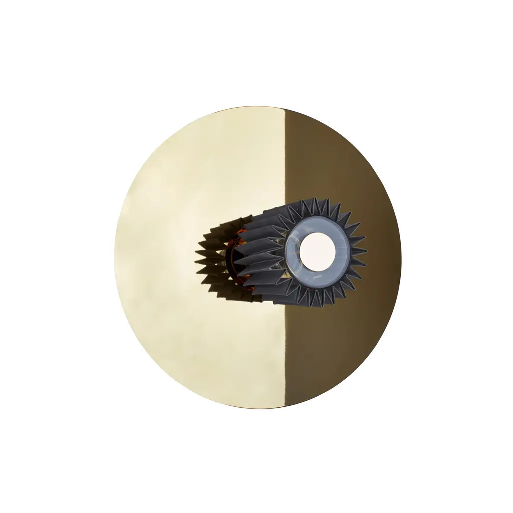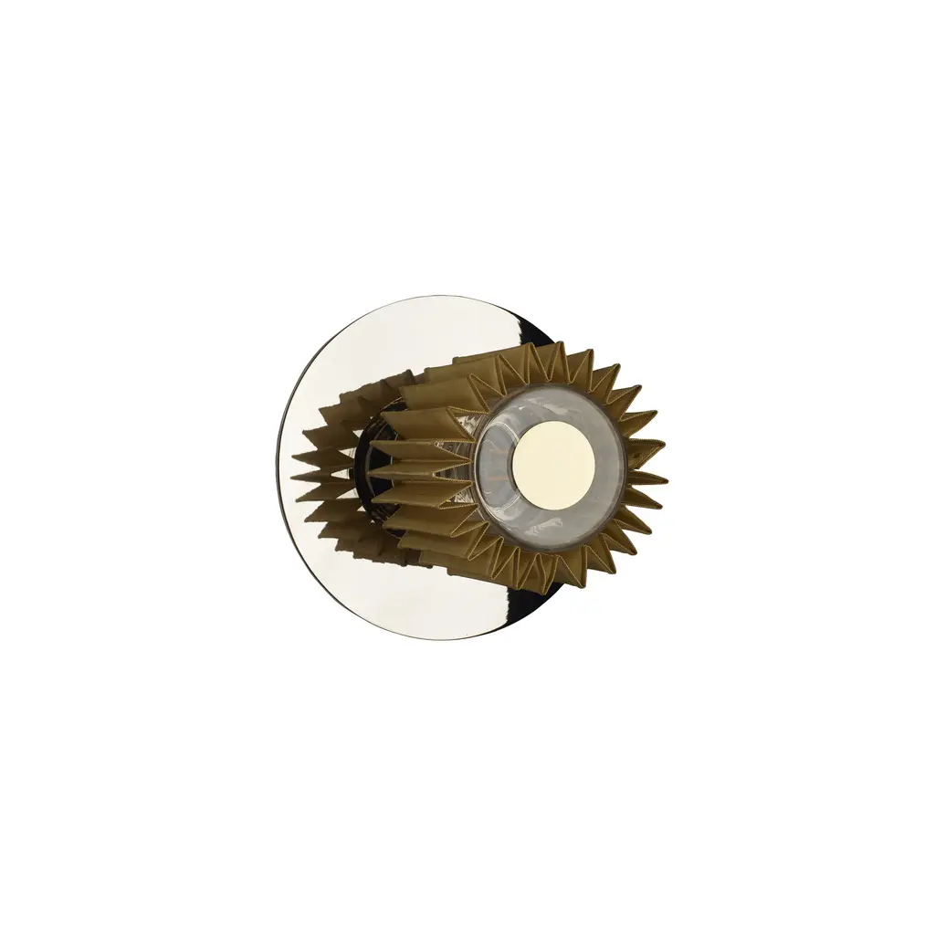 To mount on the wall or ceiling, In The Sun gleams with royal hues of silver and gold in an homage to France's Louis XIV, the 17th century Sun King. Architect-designers Dominique Perrault and Gaëlle Lauriot-Prévost configure a metal-disc backplate to reflect the warm glow from the starburst metal mesh diffuser for mood-setting atmosphere. With 3 available diameters, the light is striking on its own or perfect for displaying in assorted combinations of sizes and the varied metallic finishes.