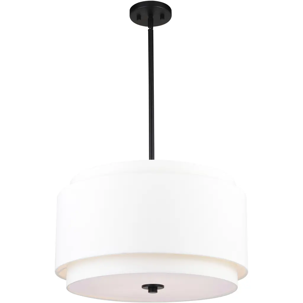 This 5 light transitional pendant features a pleasing drum shape in an Olde Bronze finish and White micro fiber shade.