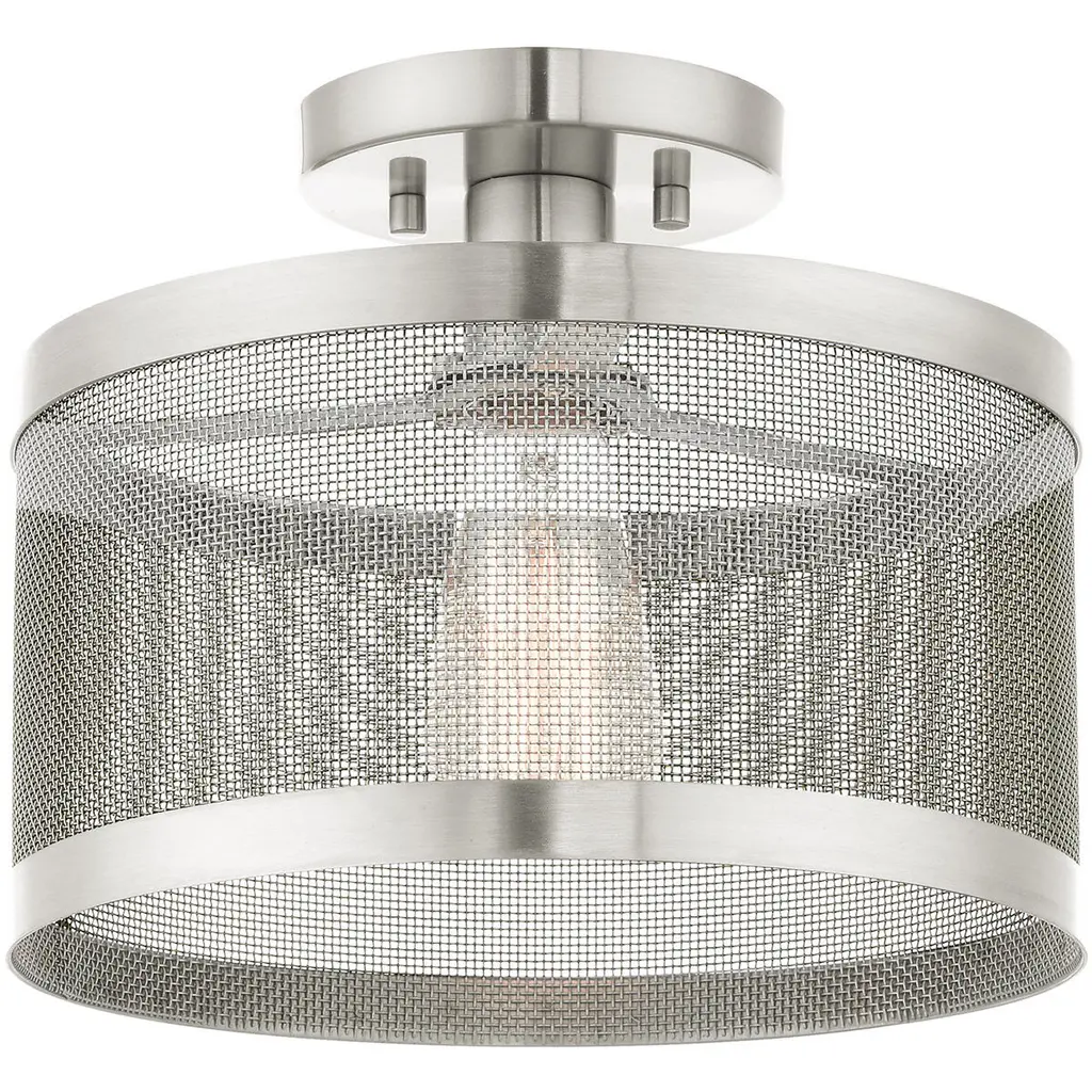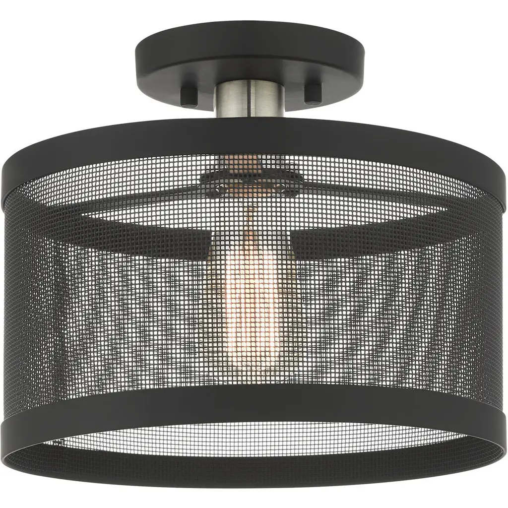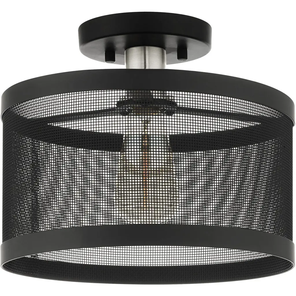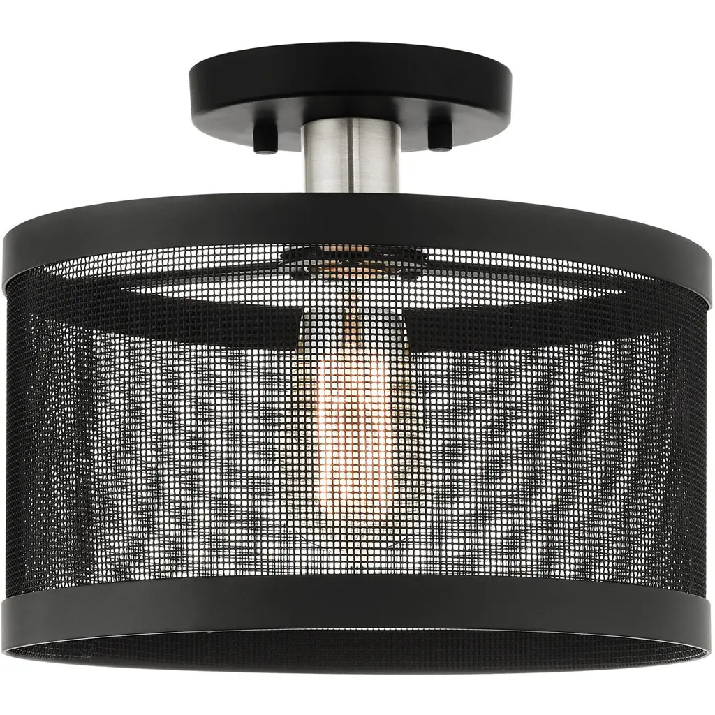 Industro 1 Light 11 Inch Black With Brushed Nickel Accents Semi Flush Ceiling Light